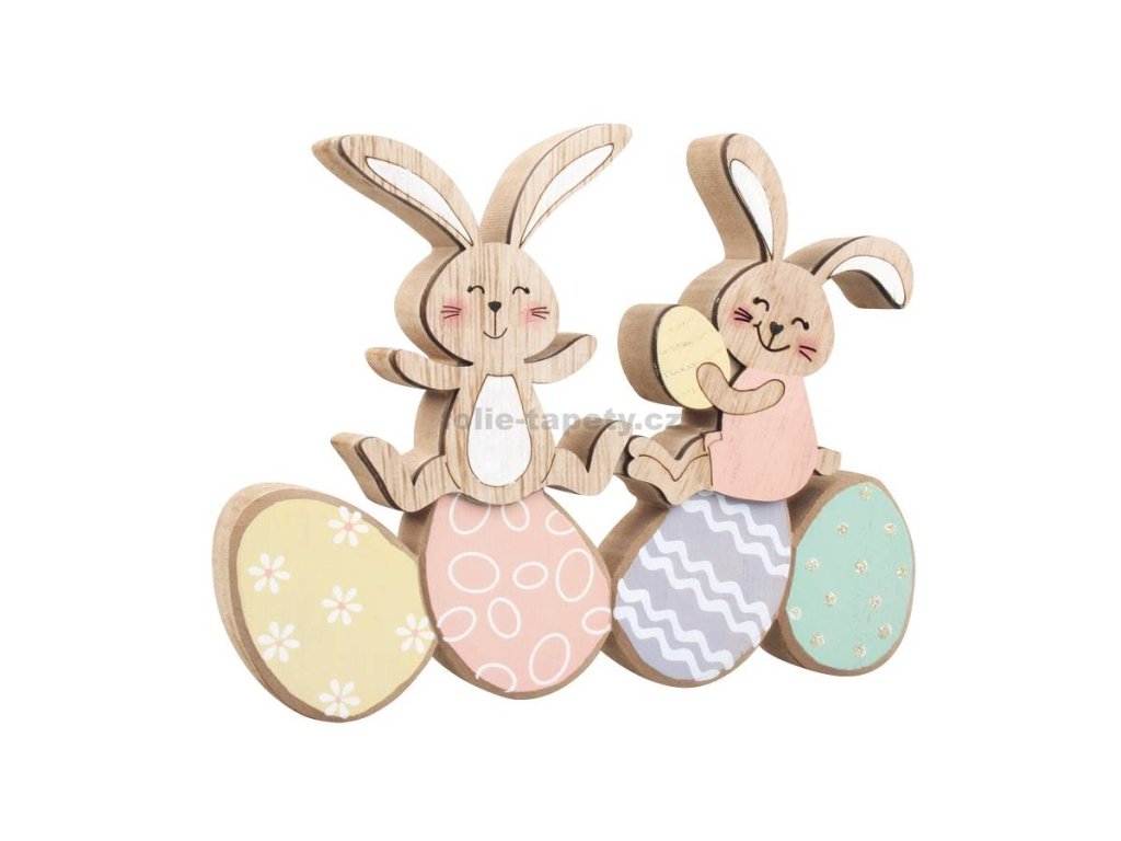 Dřevění Velikonoční zajíčci barevní 18 x 12 cm