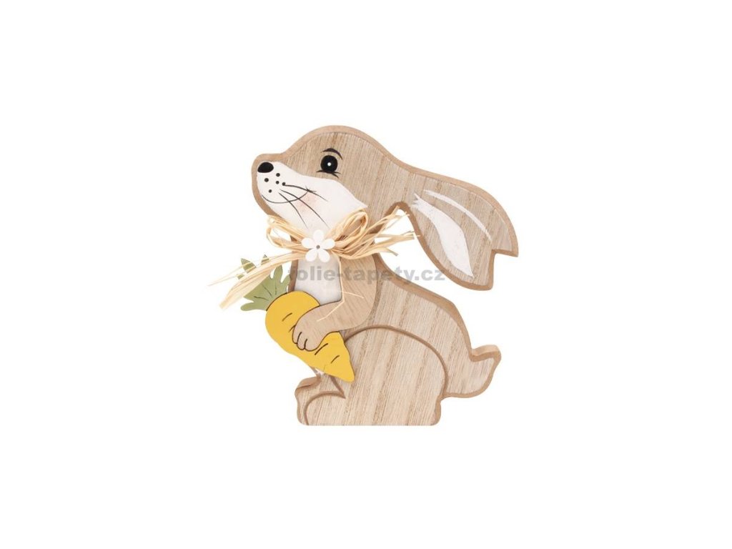 Dřevěný Velikonoční zajíc s mrkvičkou 14 cm