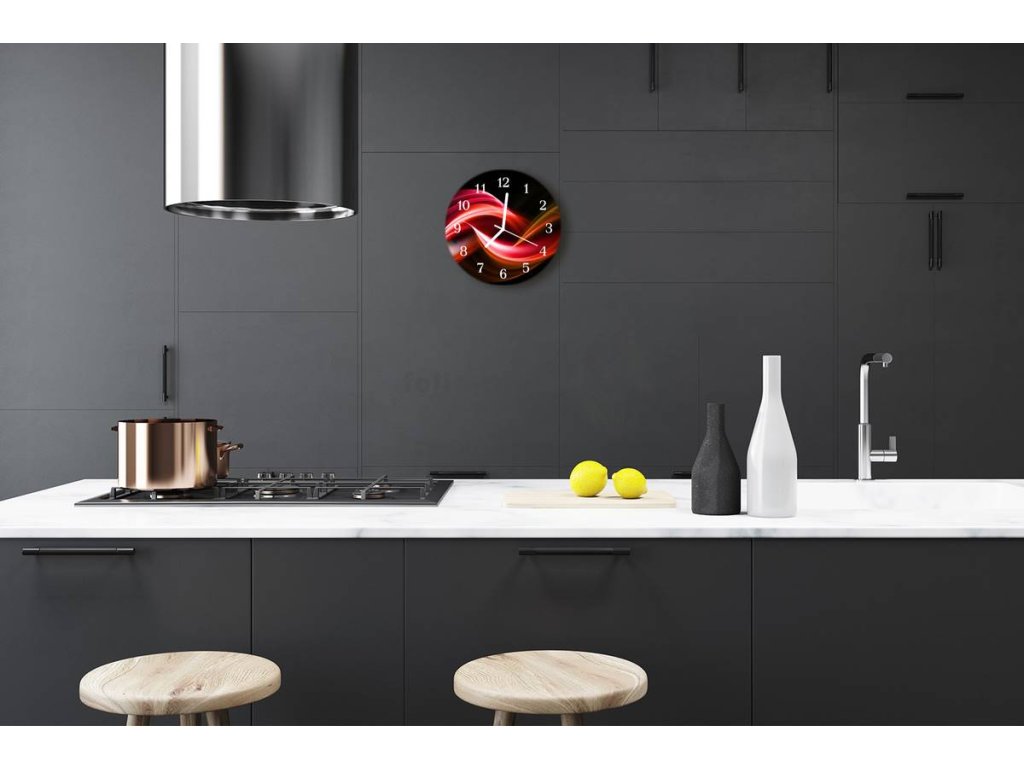 Hodiny nástěnné obrazové na skle - Abstrakt červený