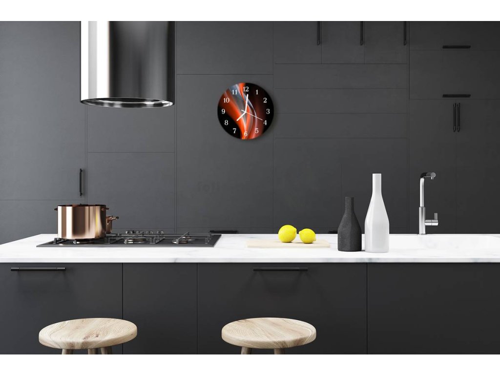 Hodiny nástěnné obrazové na skle - Abstrakt oranžovošedý