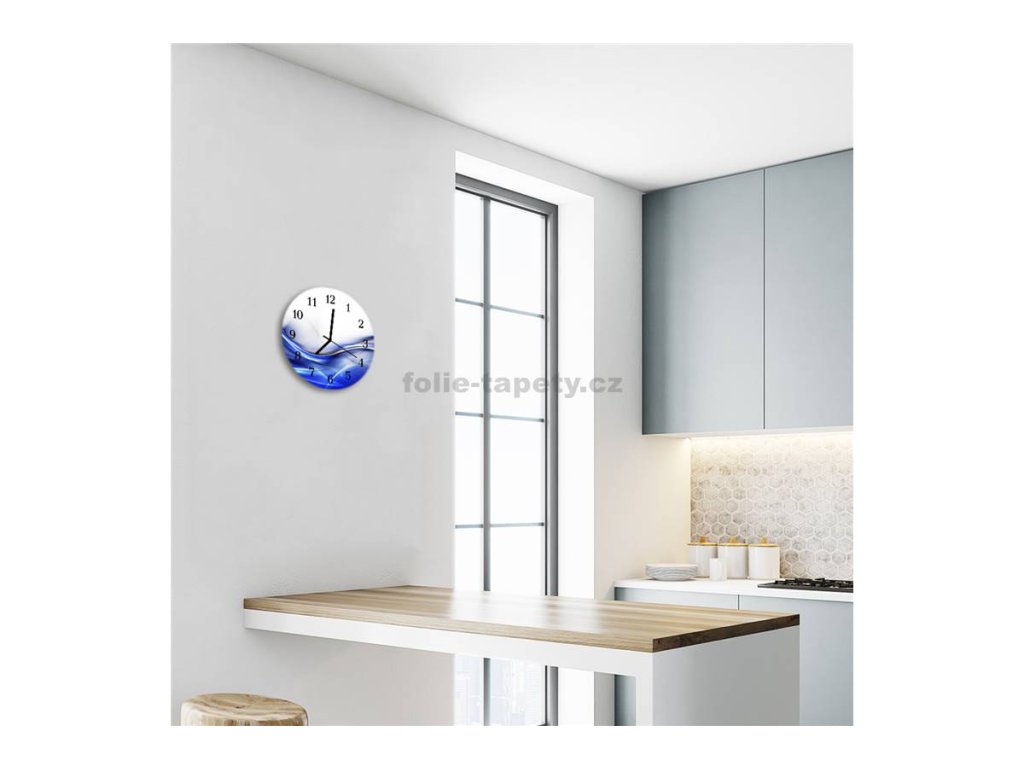 Nástěnné hodiny obrazové na skle - Abstrakt modrý