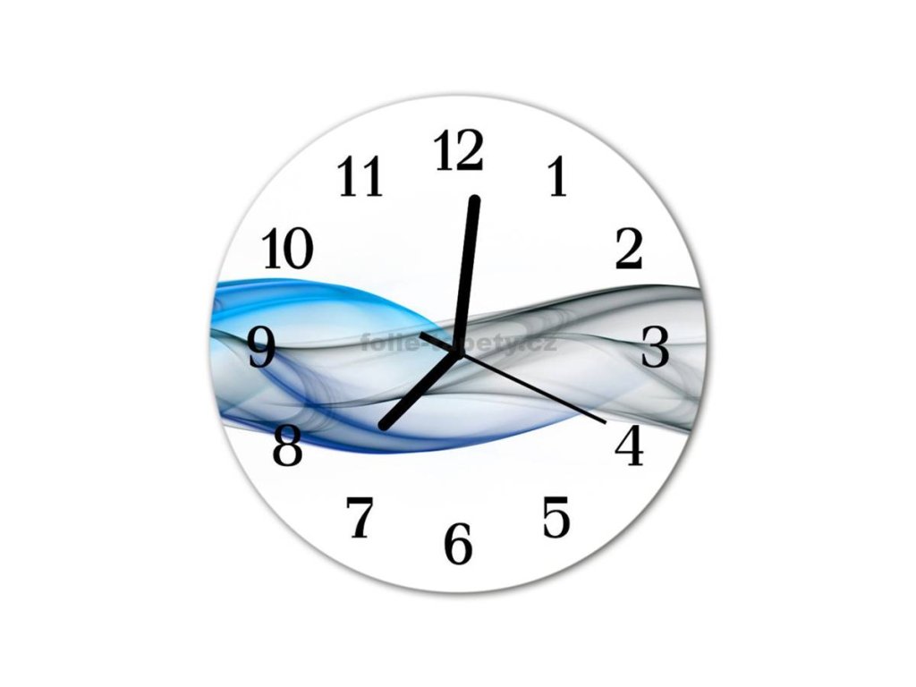 Nástěnné hodiny obrazové na skle - Abstrakt modrý
