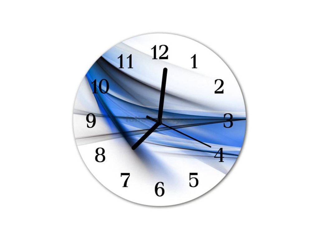Nástěnné hodiny obrazové na skle - Abstrakt modrý