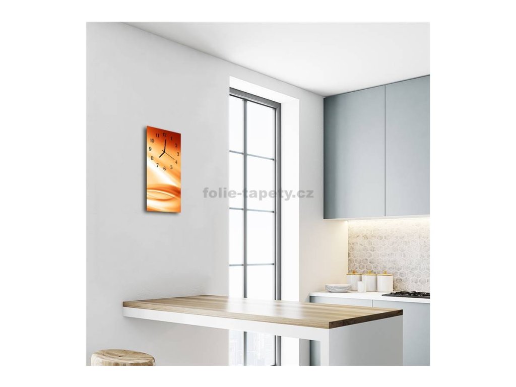 Nástěnné hodiny obrazové na skle - Abstrakt oranžový