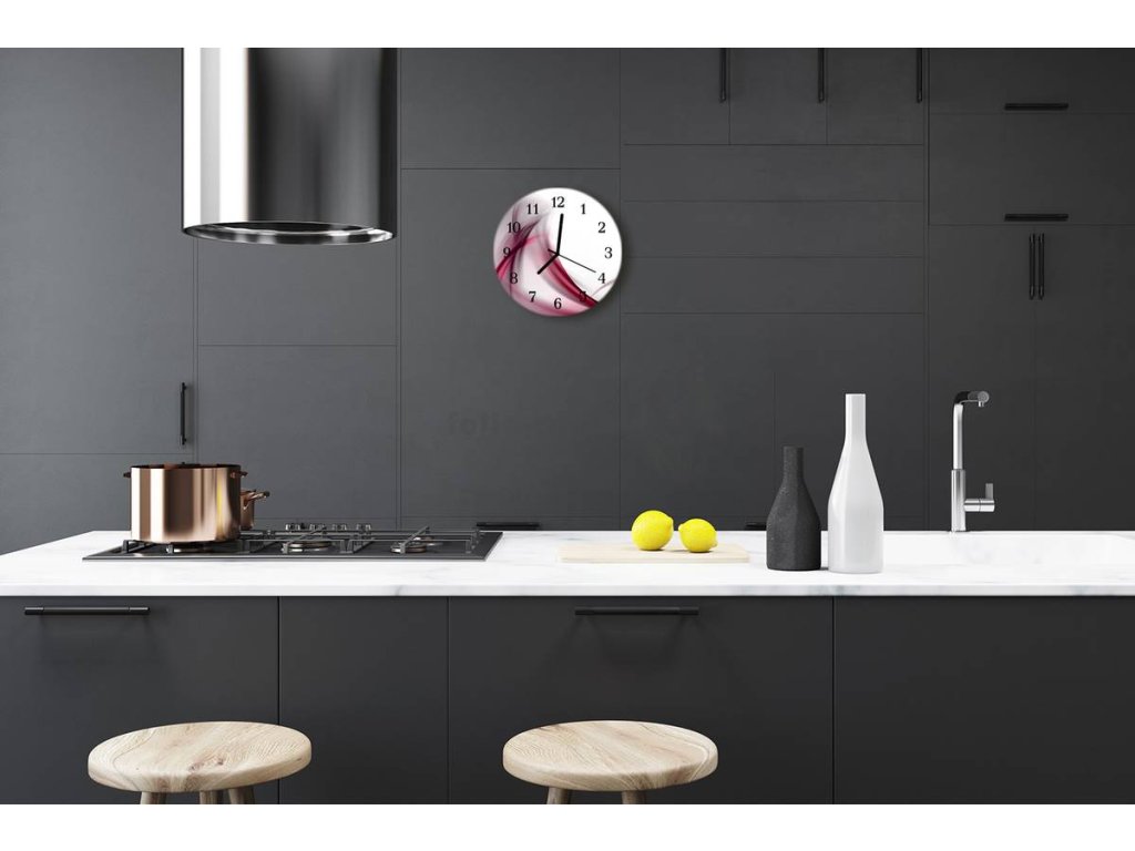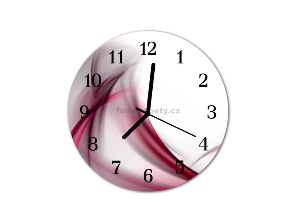Nástěnné hodiny obrazové na skle - Abstrakt růžovočervený