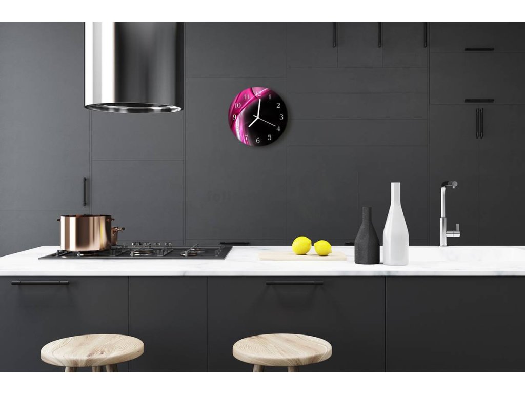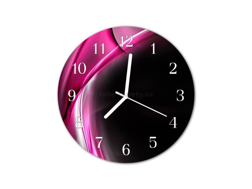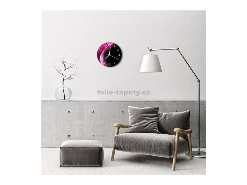 Nástěnné hodiny obrazové na skle - Abstrakt růžový