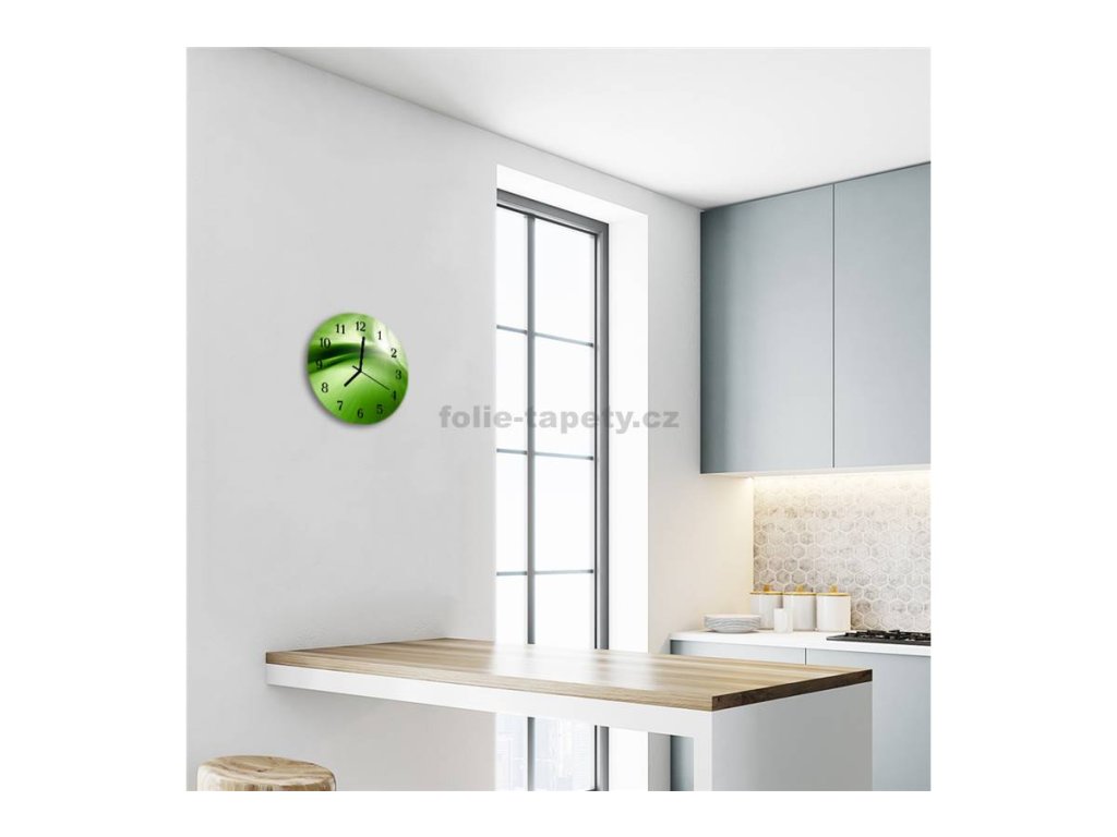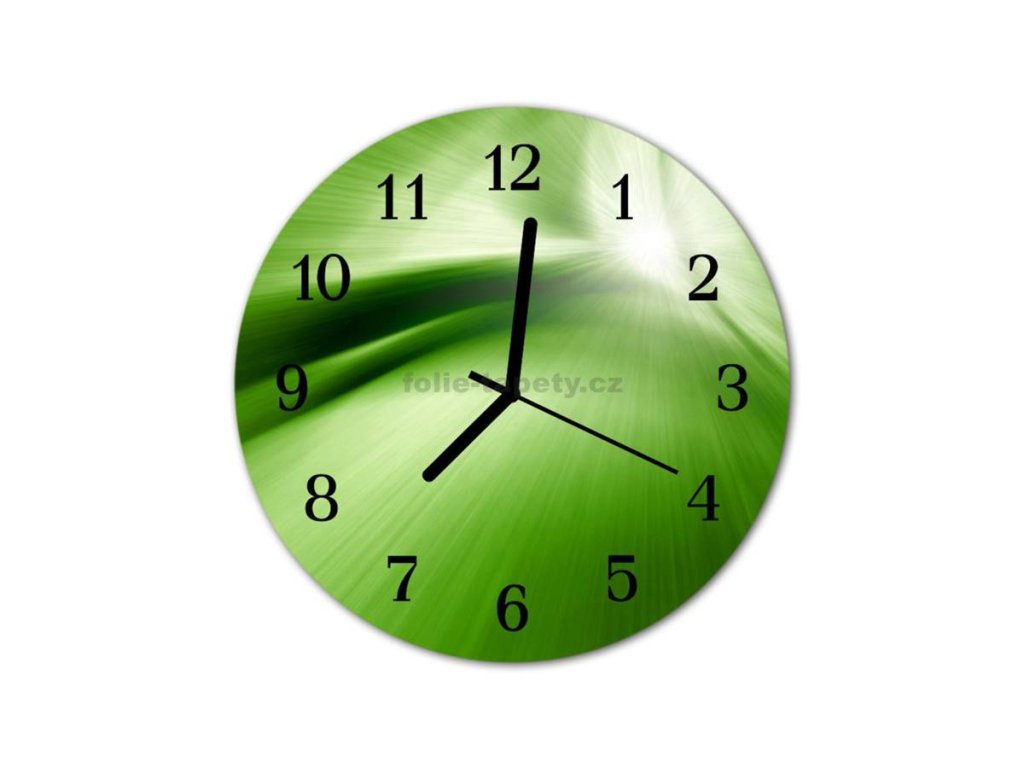 Nástěnné hodiny obrazové na skle - Abstrakt zelený