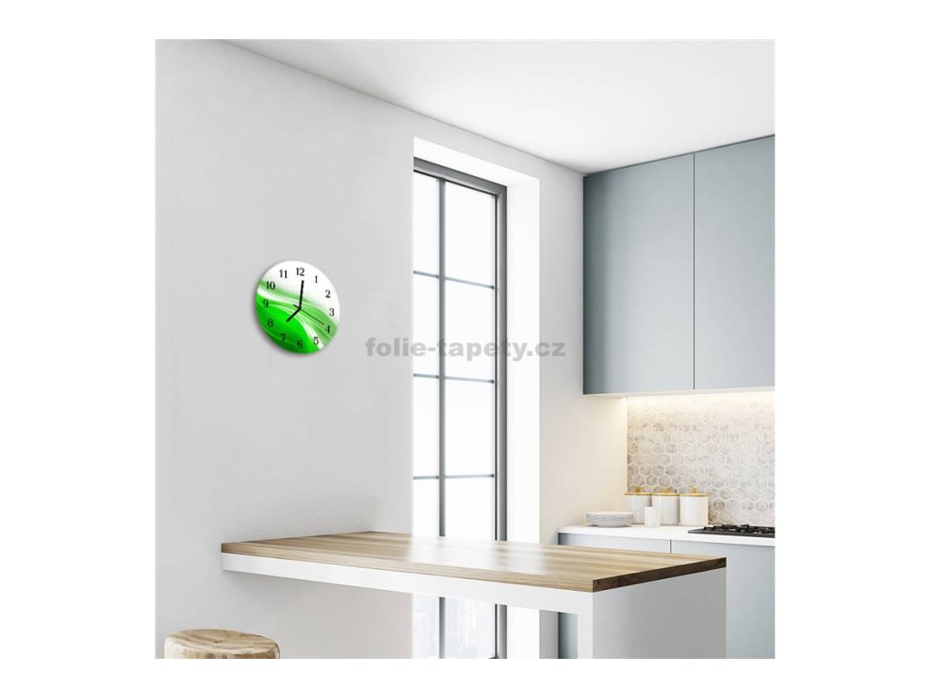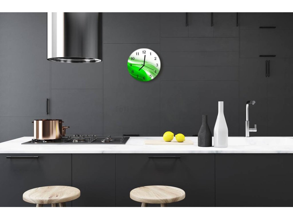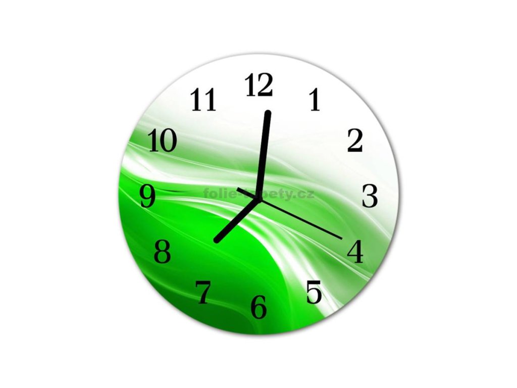Nástěnné hodiny obrazové na skle - Abstrakt zelený