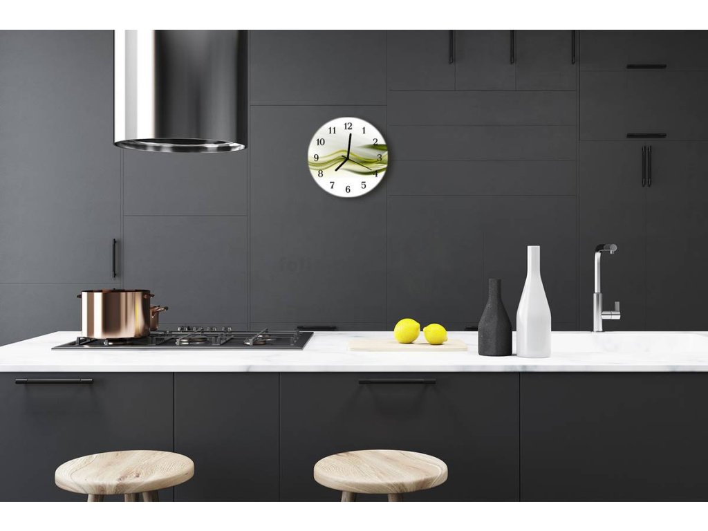 Nástěnné hodiny obrazové na skle - Abstrakt zelený