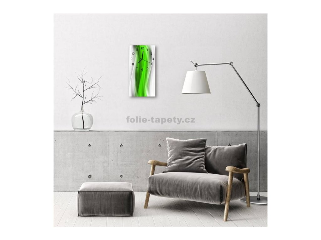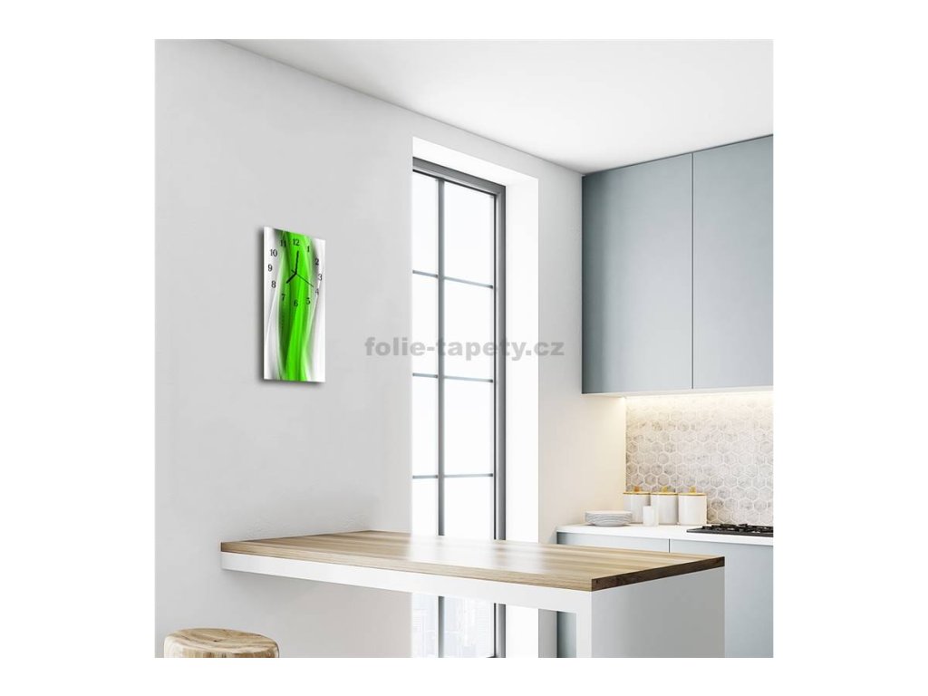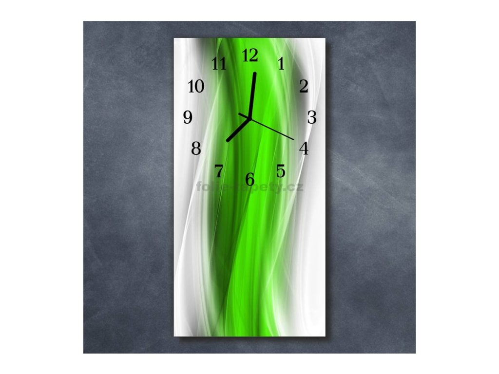 Nástěnné hodiny obrazové na skle - Abstrakt zelený I