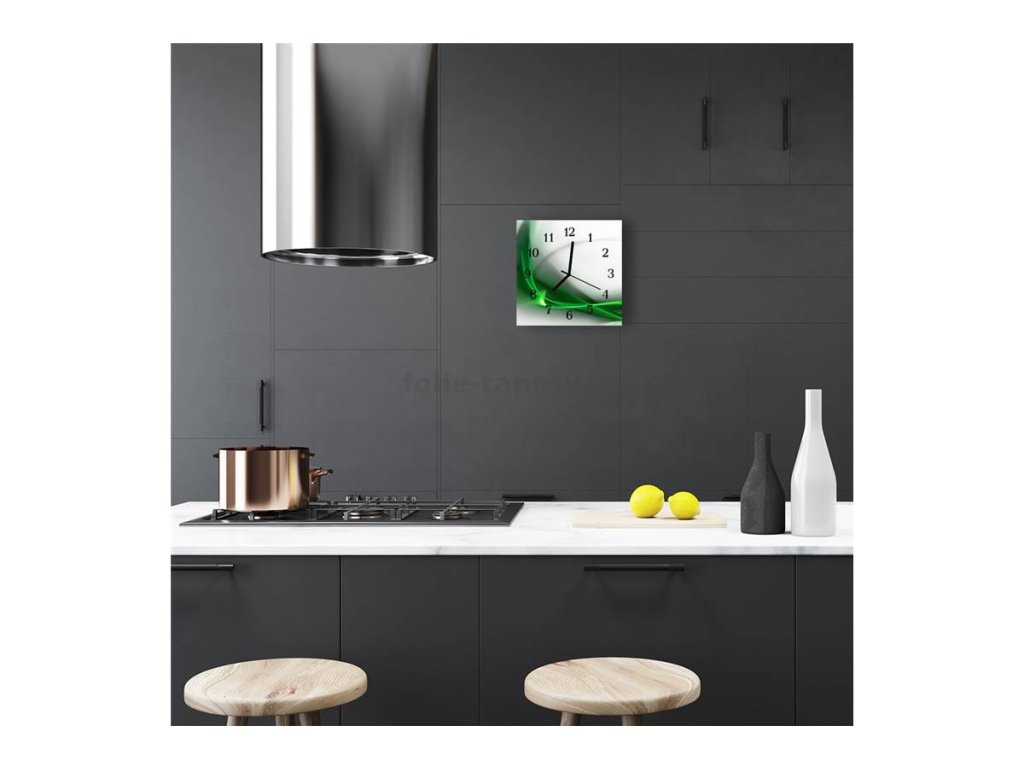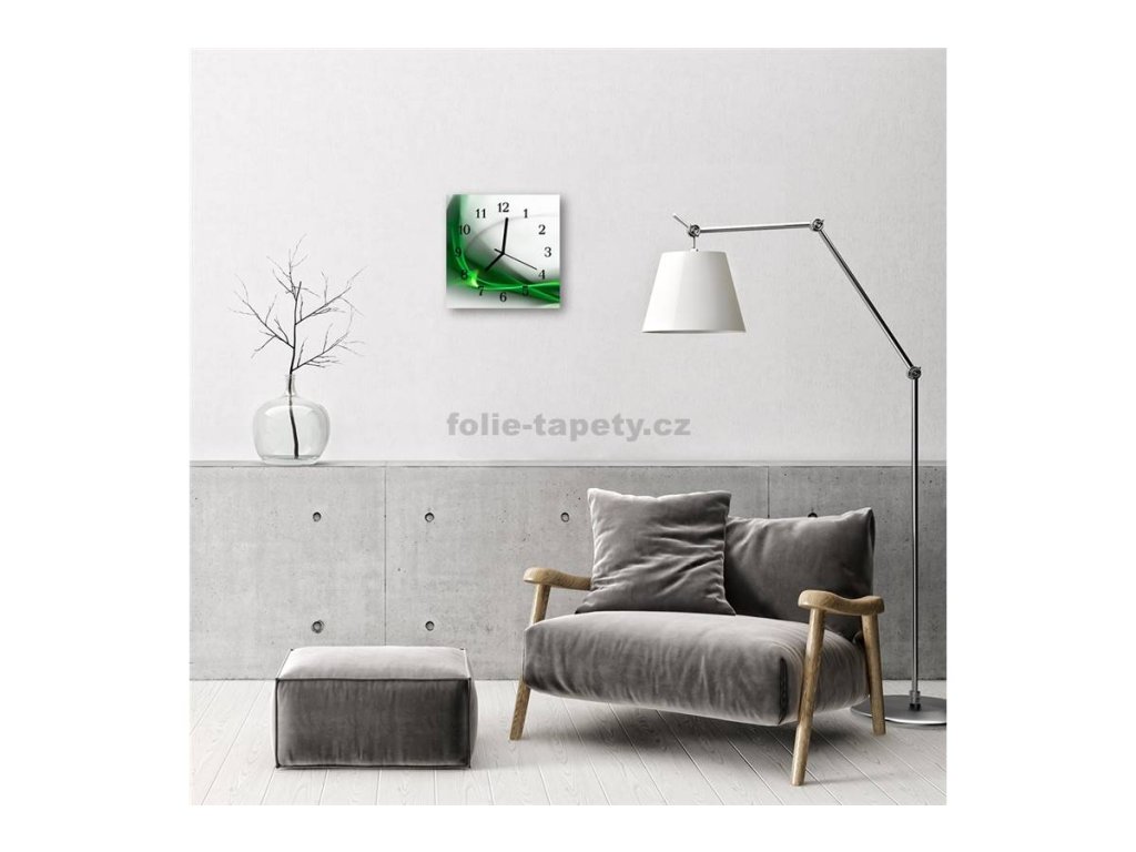 Nástěnné hodiny obrazové na skle - Abstrakt zelený III