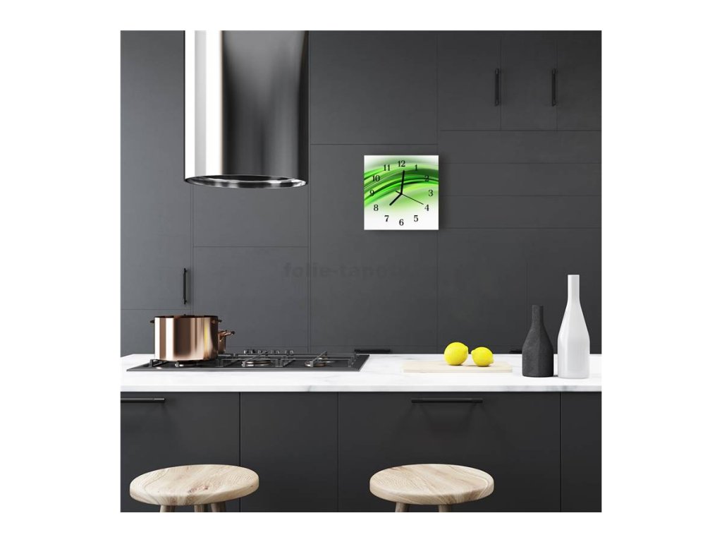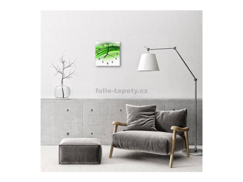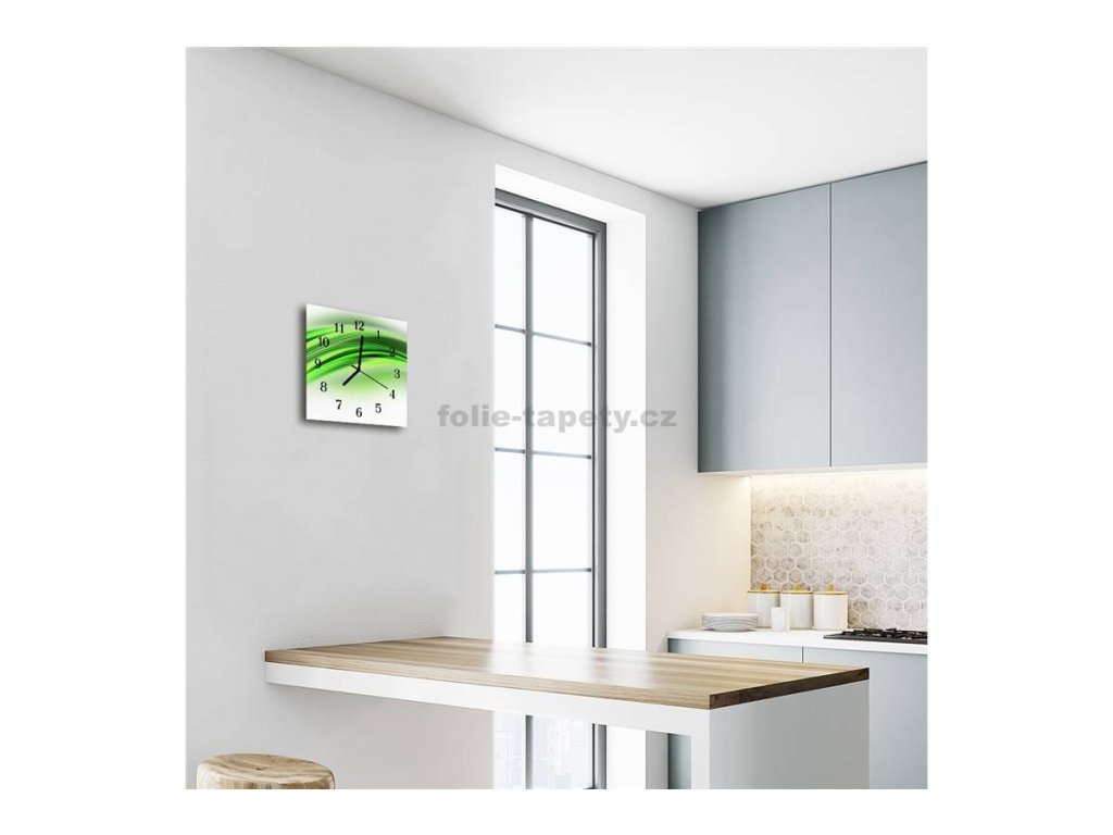 Nástěnné hodiny obrazové na skle - Abstrakt zelený