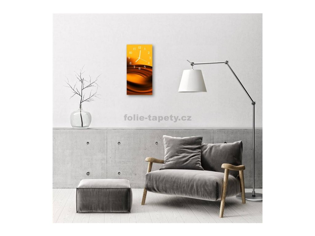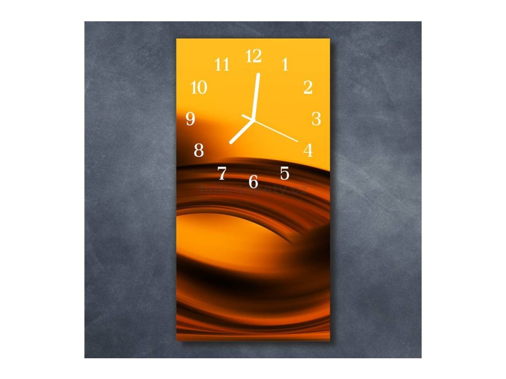 Nástěnné hodiny obrazové na skle - Abstrakt žlutohnědý