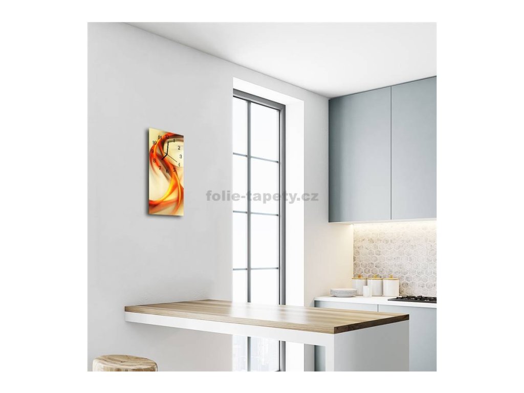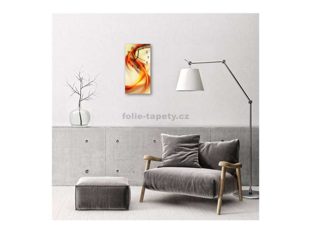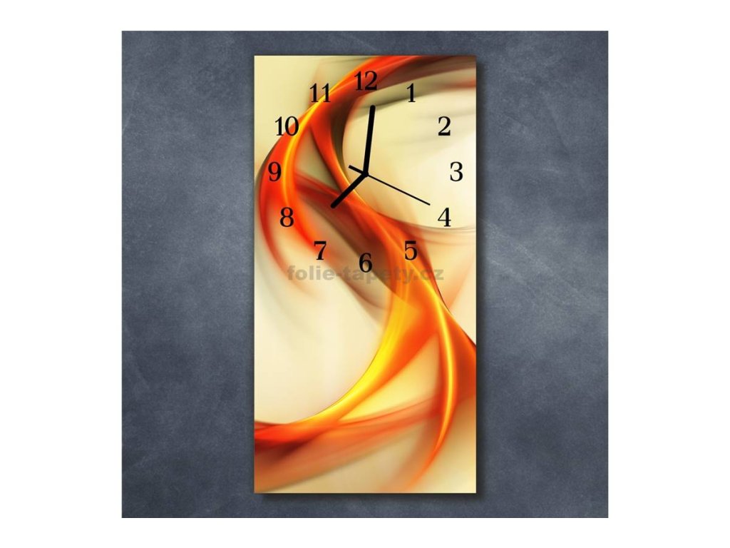 Nástěnné hodiny obrazové na skle - Abstrakt žlutooranžový