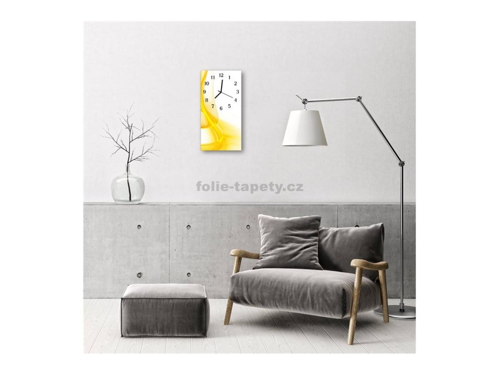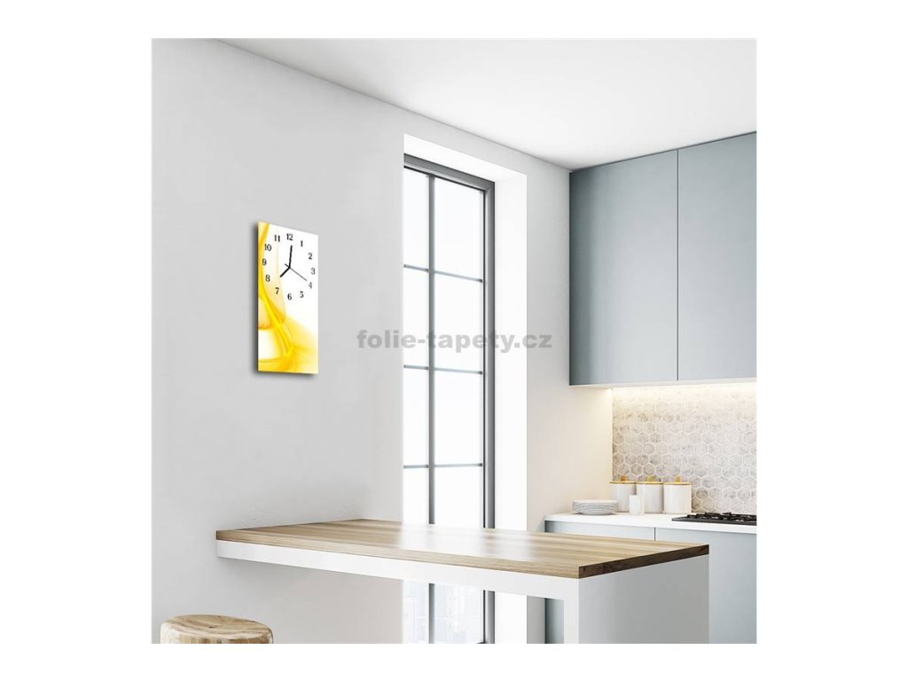 Nástěnné hodiny obrazové na skle - Abstrakt žlutý II