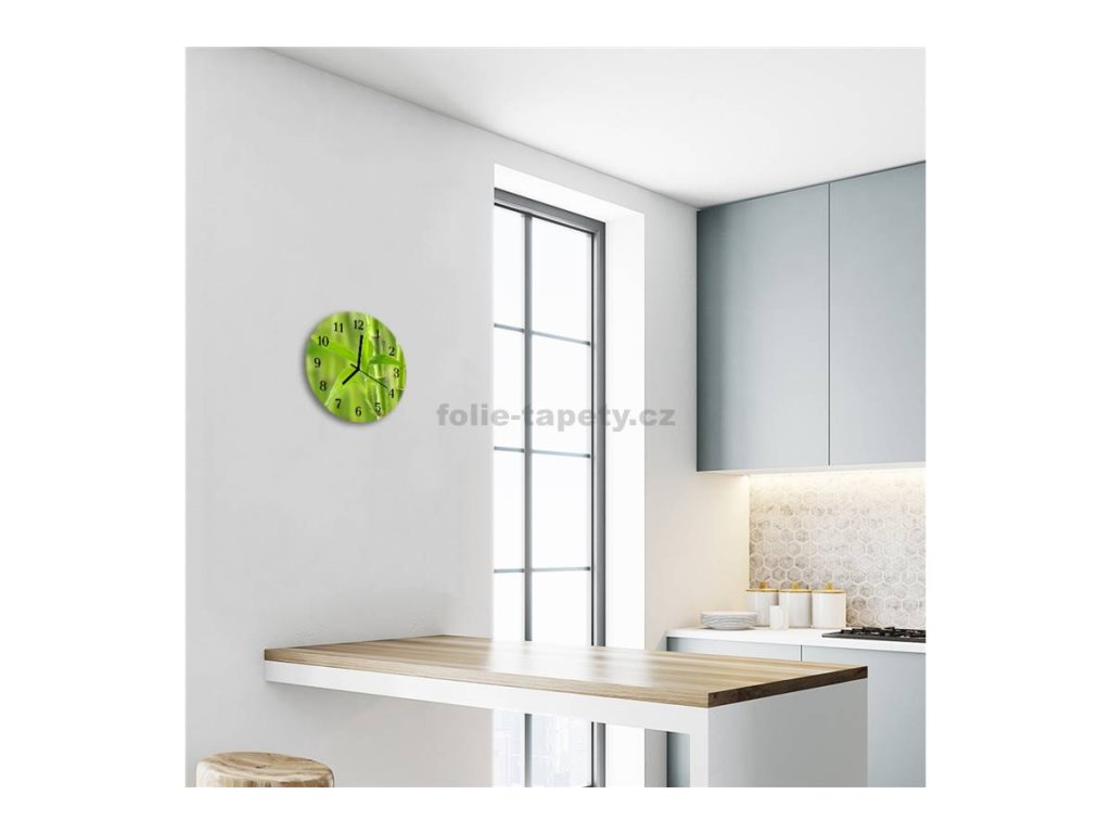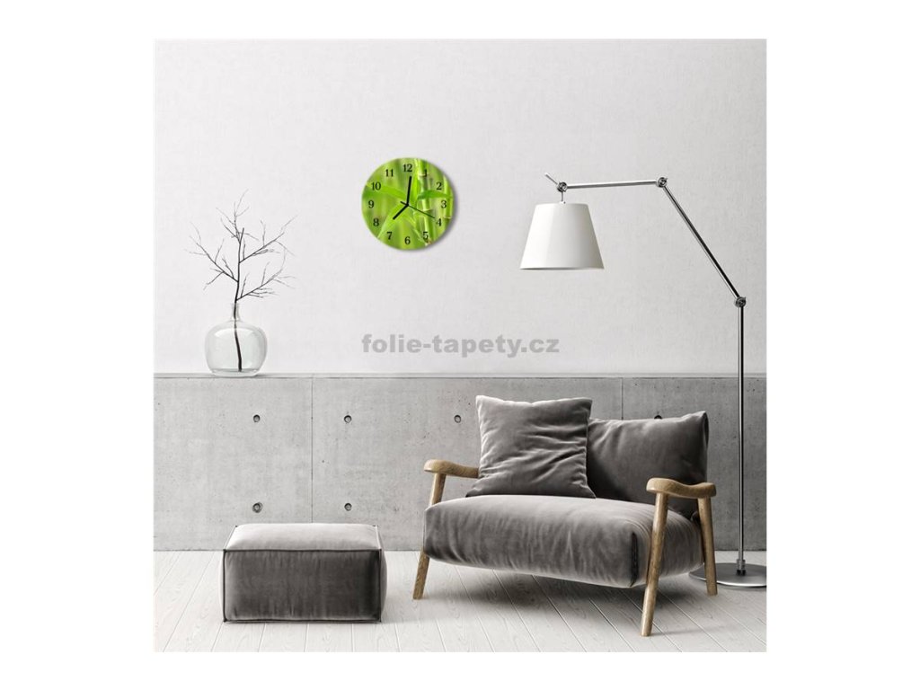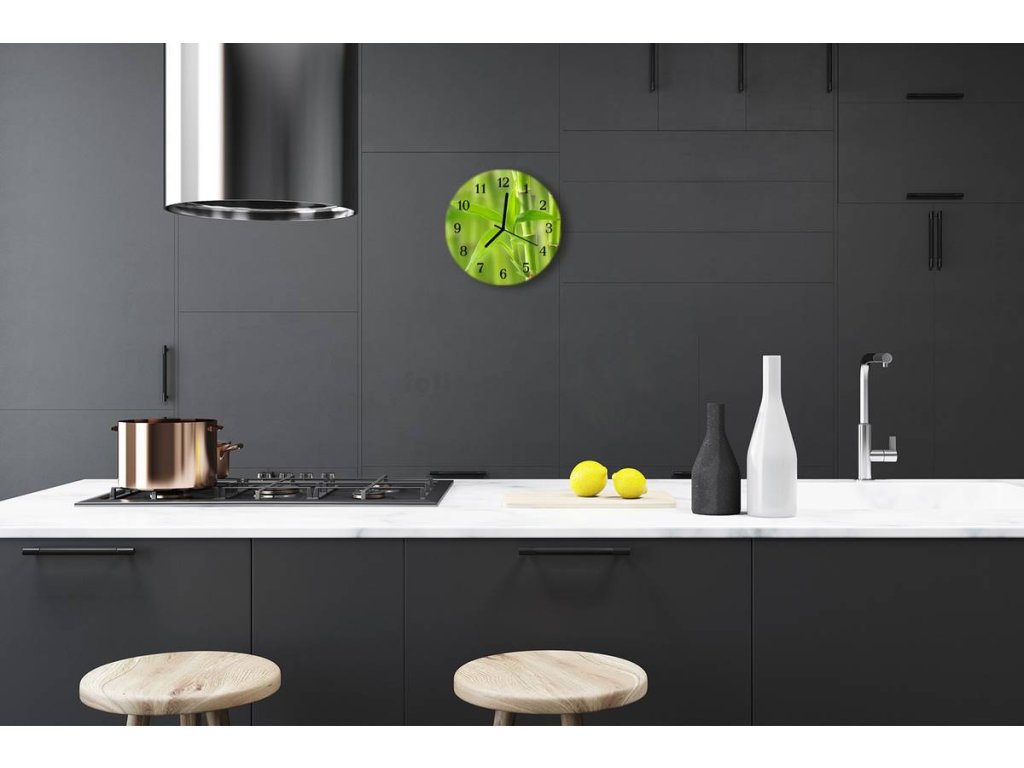 Nástěnné hodiny obrazové na skle - Bambusové listy