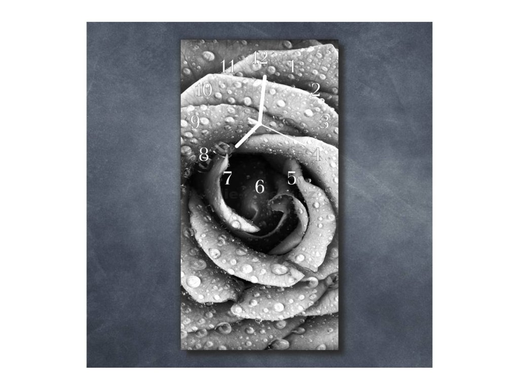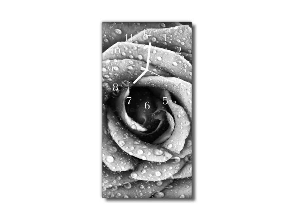 Nástěnné hodiny obrazové na skle - Černobílá růže