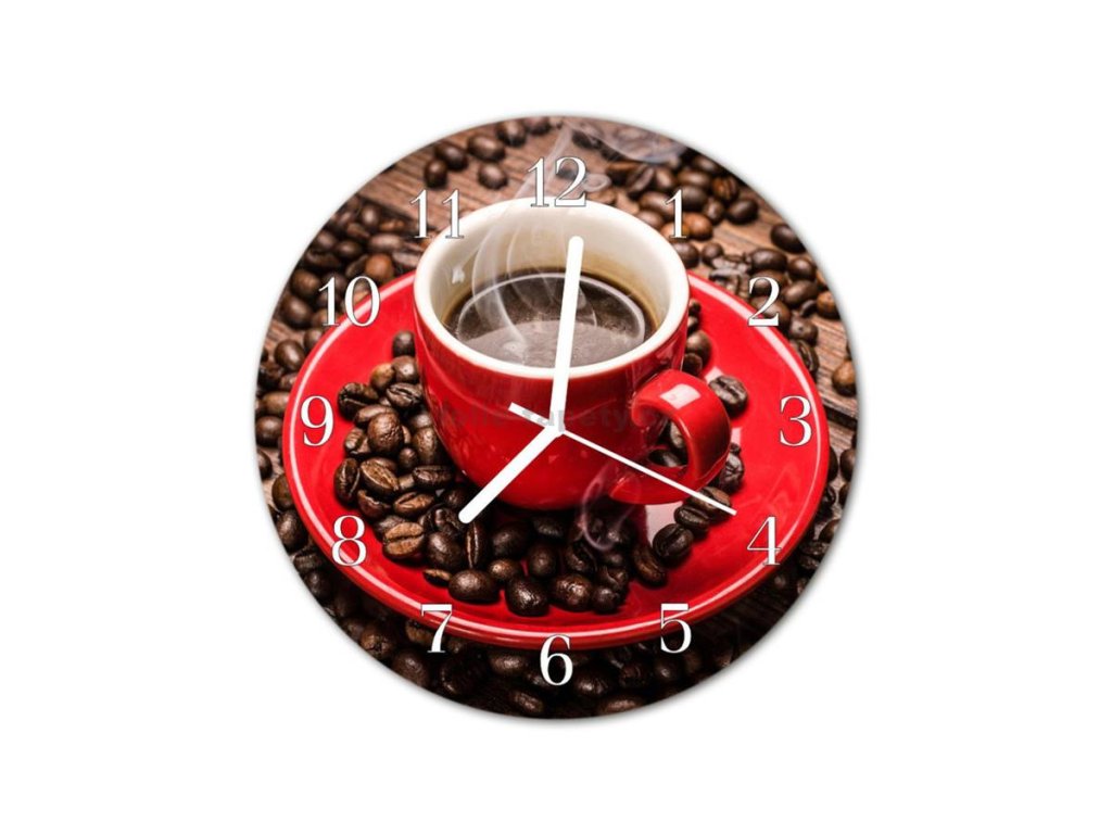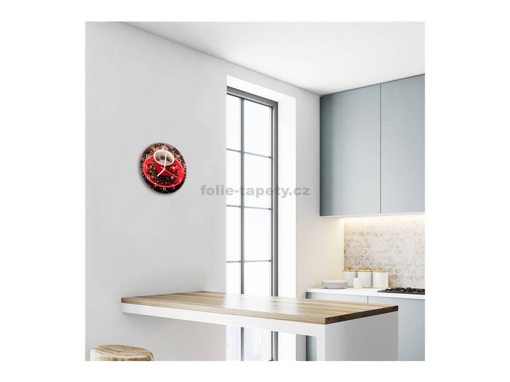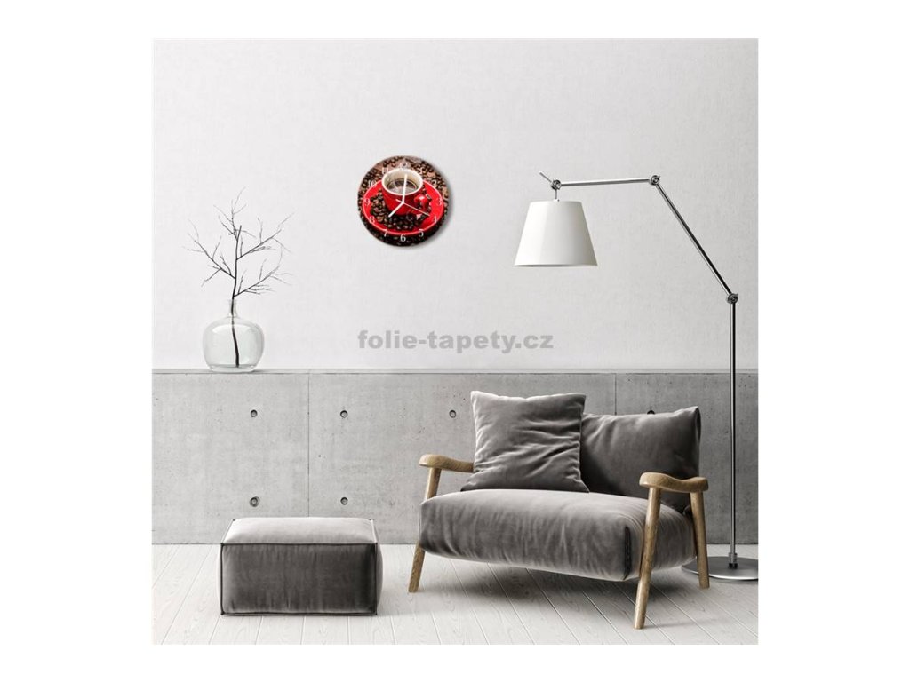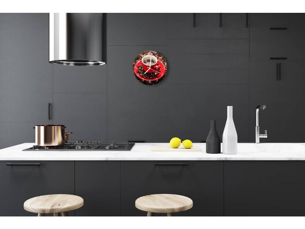 Nástěnné hodiny obrazové na skle - Červený šálek