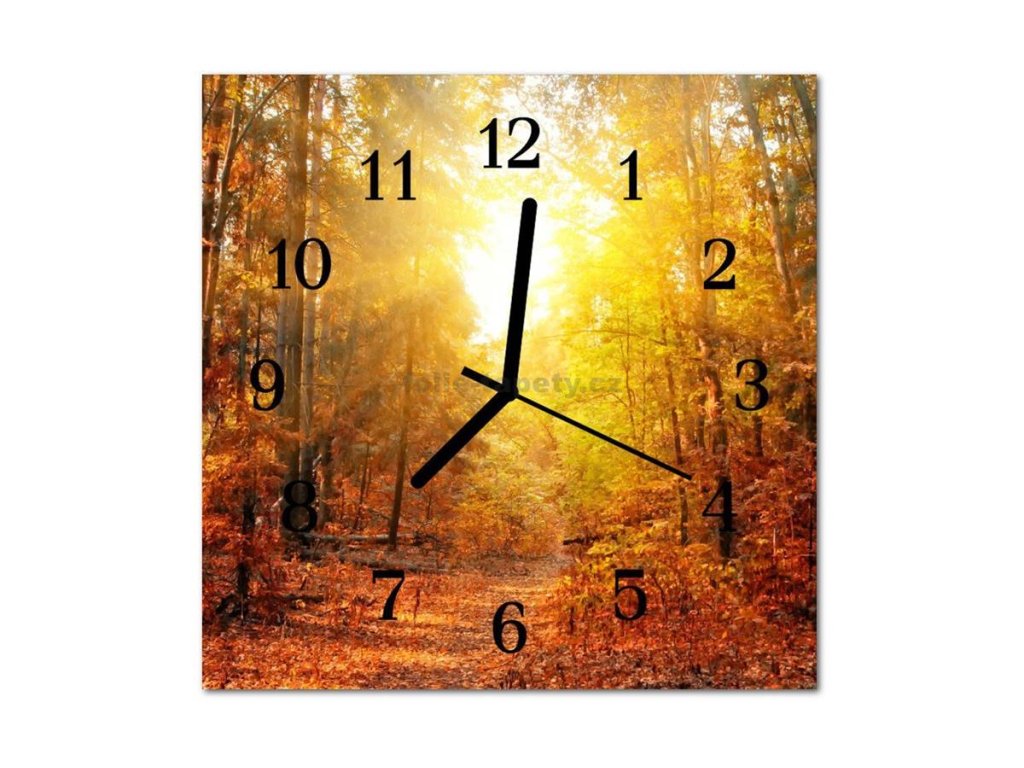 Nástěnné hodiny obrazové na skle - Cesta lesem