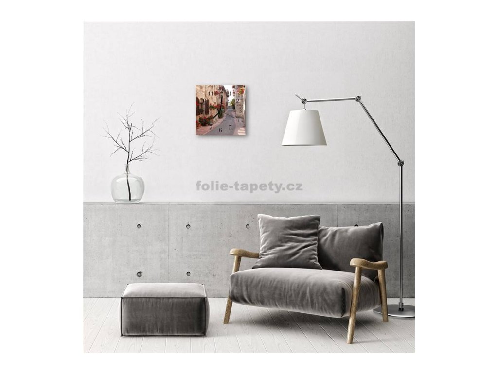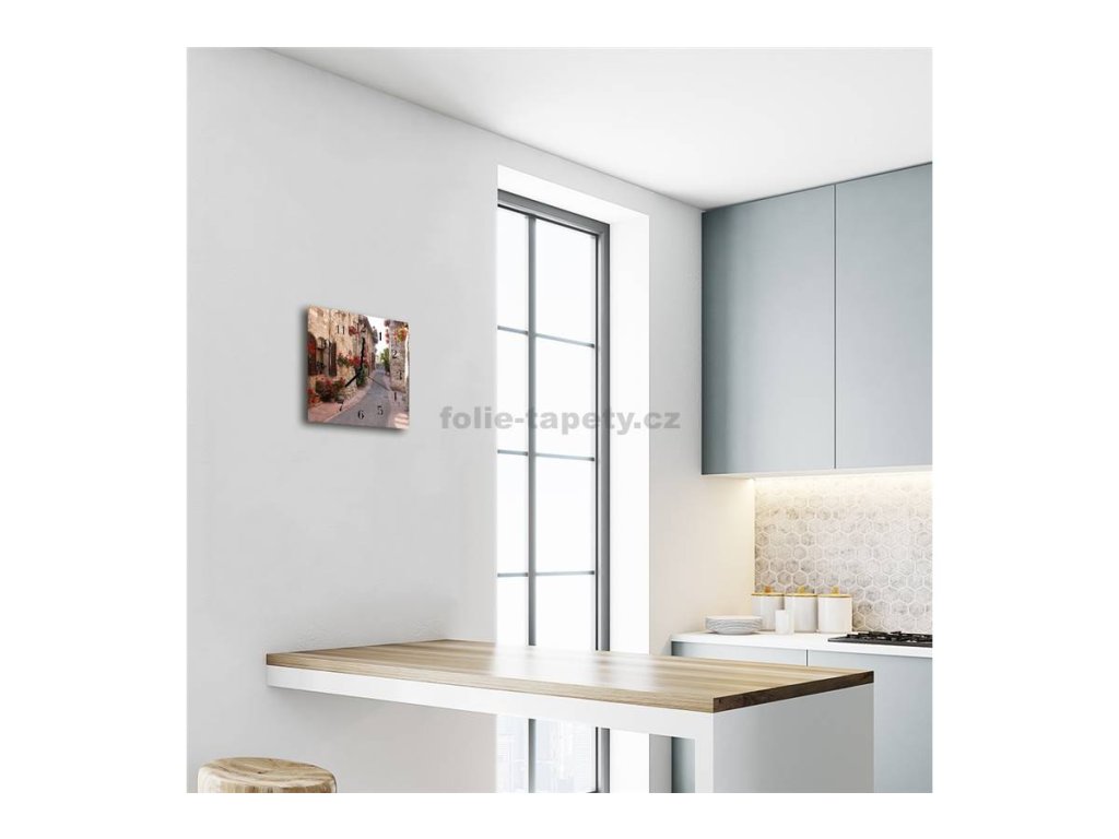Nástěnné hodiny obrazové na skle - Cesta uličkou