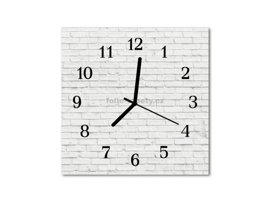 Nástěnné hodiny obrazové na skle - Cihla bílá malá
