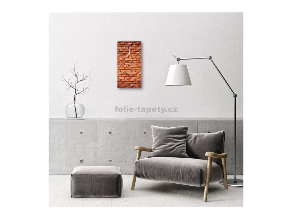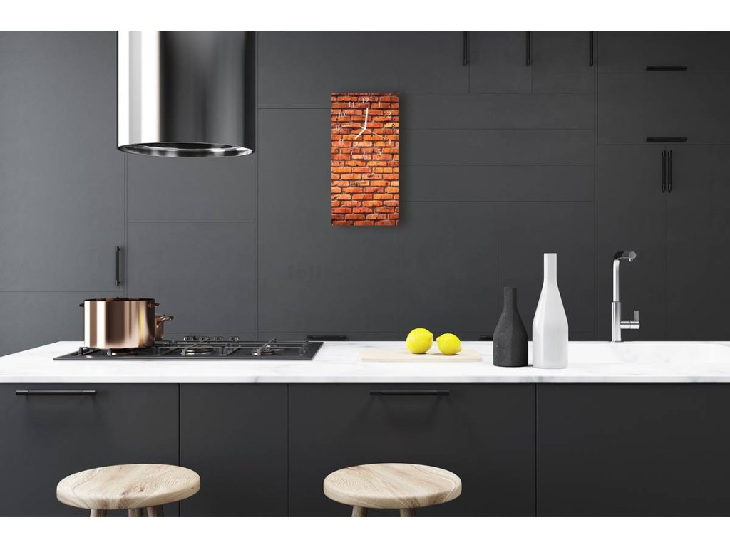 Nástěnné hodiny obrazové na skle - Cihla červená I