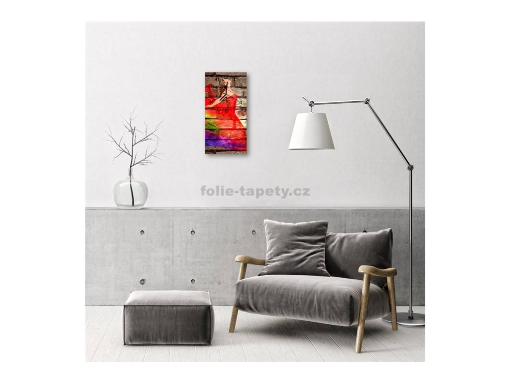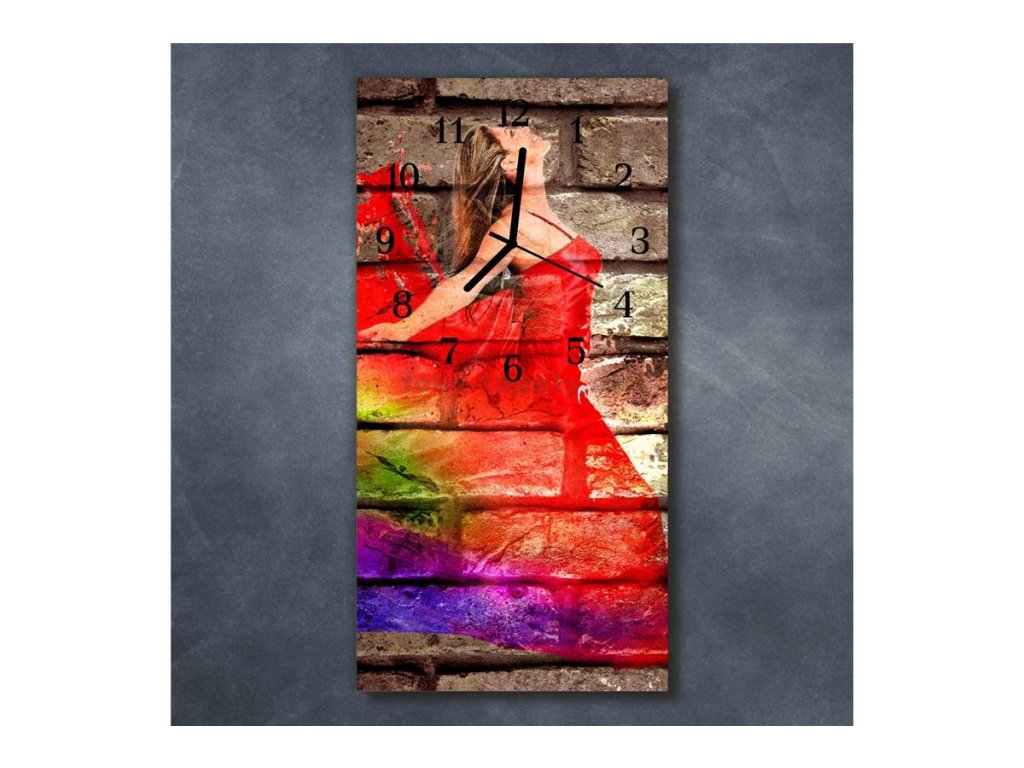 Nástěnné hodiny obrazové na skle - Cihlová zeď žena