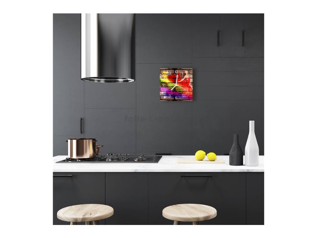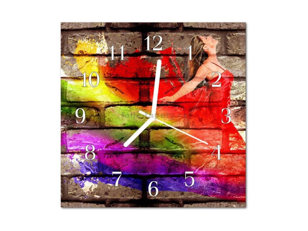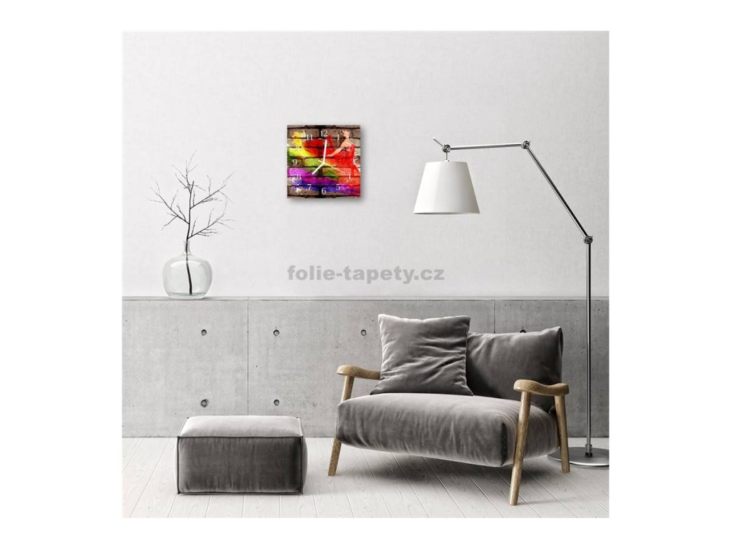 Nástěnné hodiny obrazové na skle - Cihlová zeď žena