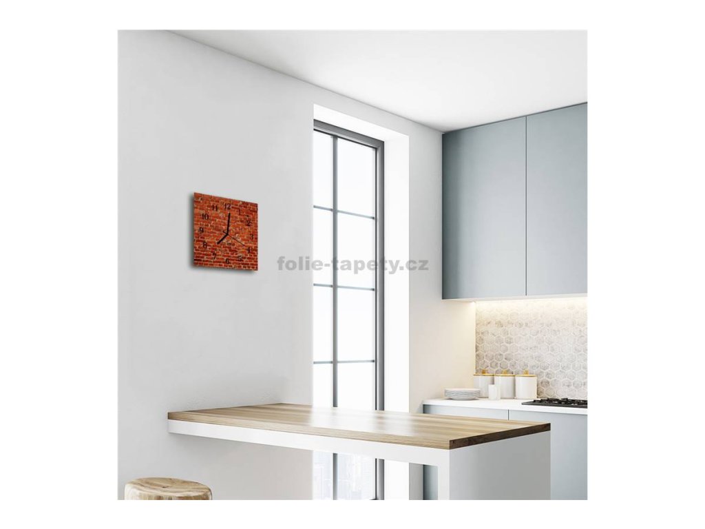 Nástěnné hodiny obrazové na skle - Cihly červené