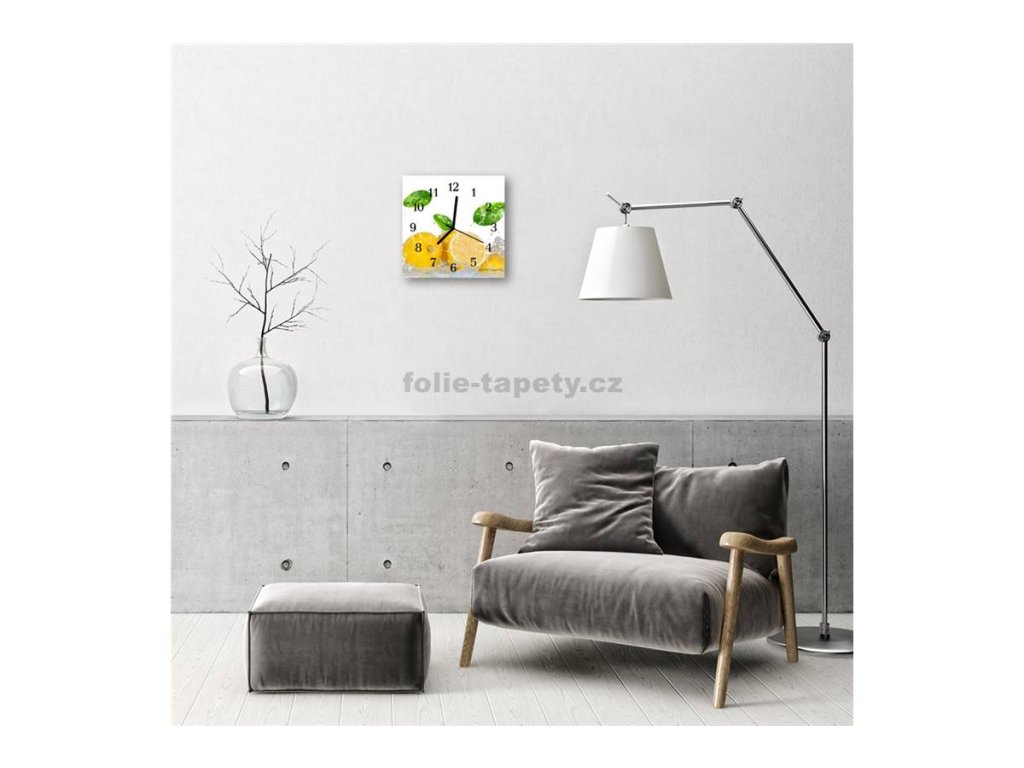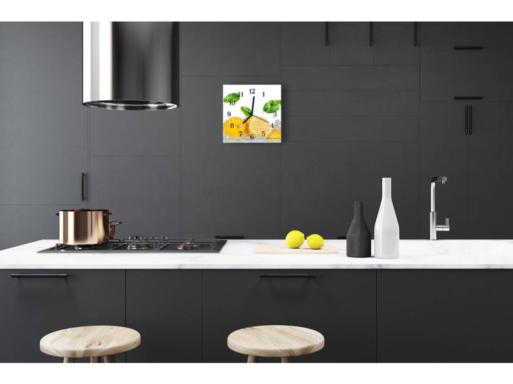 Nástěnné hodiny obrazové na skle - Citron a voda