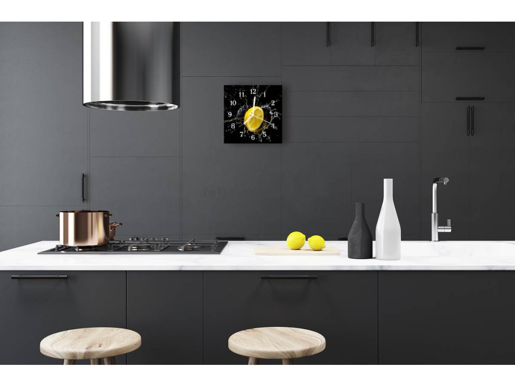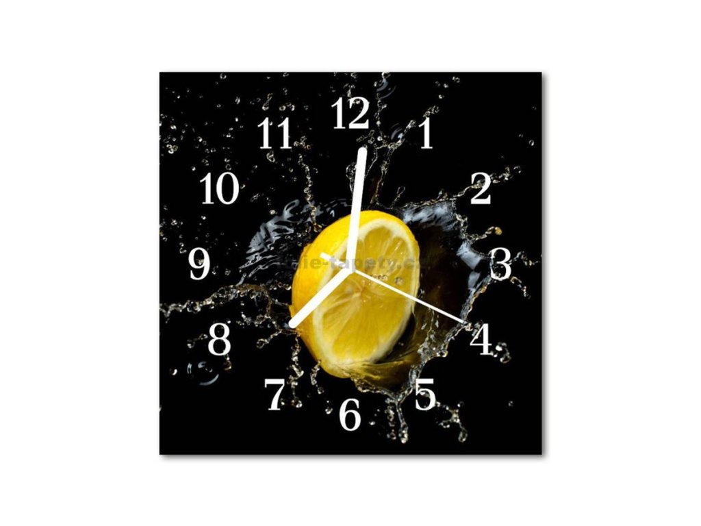 Nástěnné hodiny obrazové na skle - Citron ve vodě