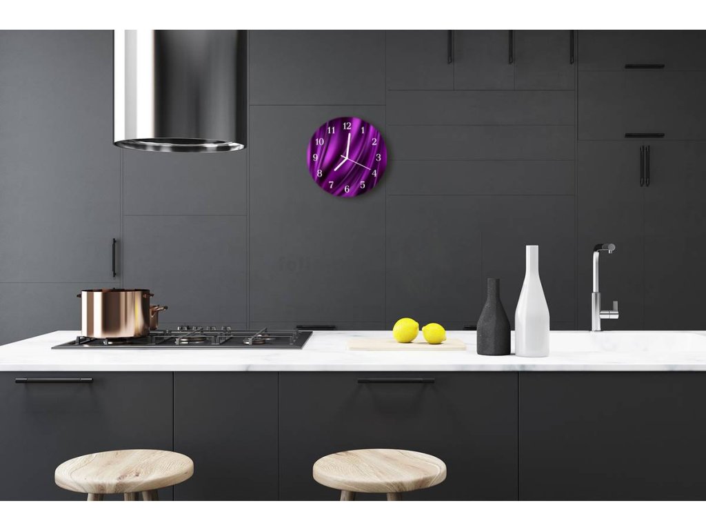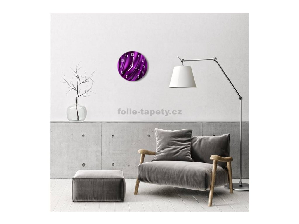 Nástěnné hodiny obrazové na skle - Design fialový