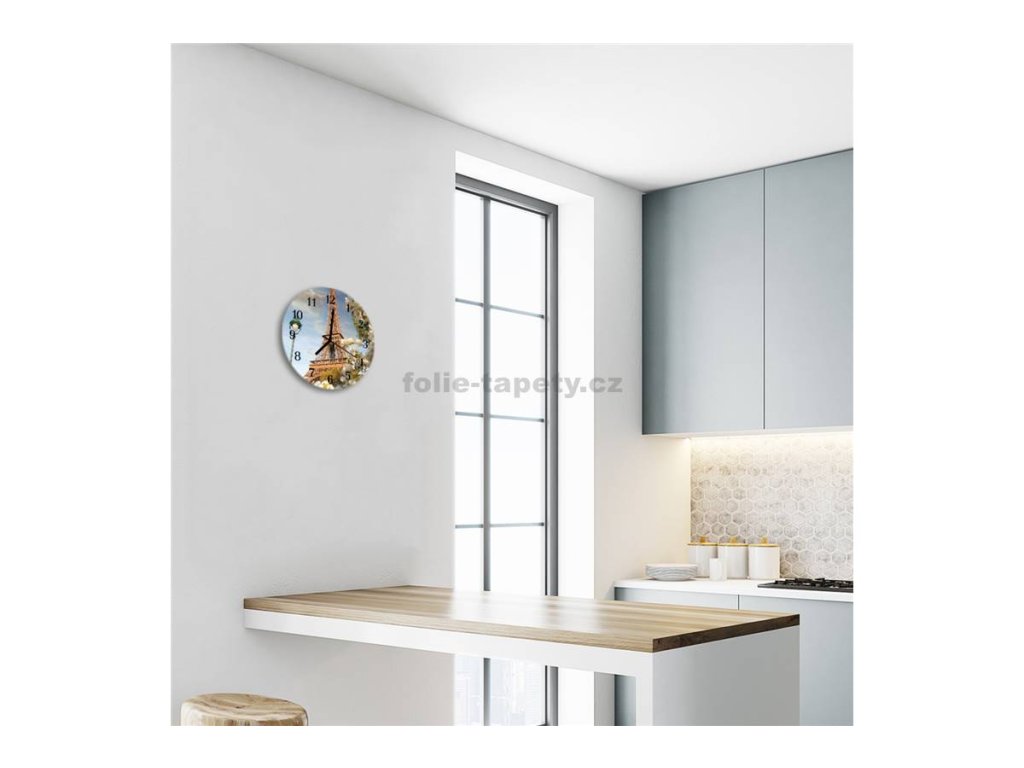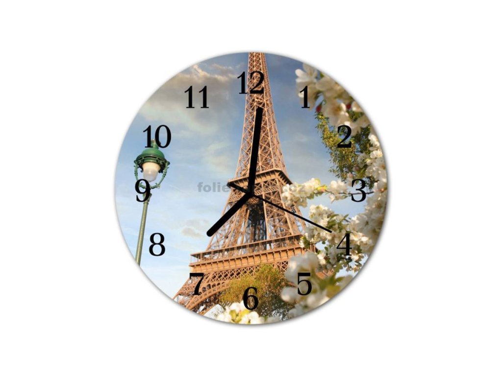 Nástěnné hodiny obrazové na skle - Eiffelova věž v Paříži