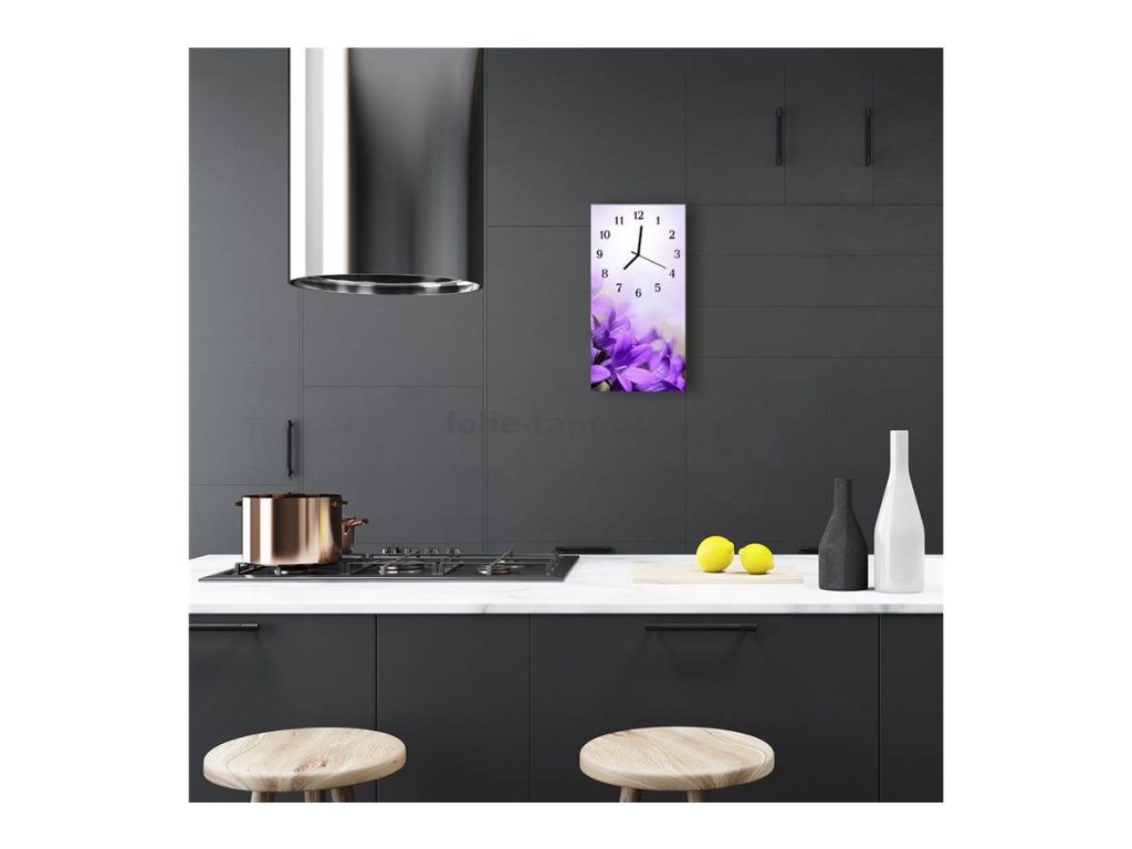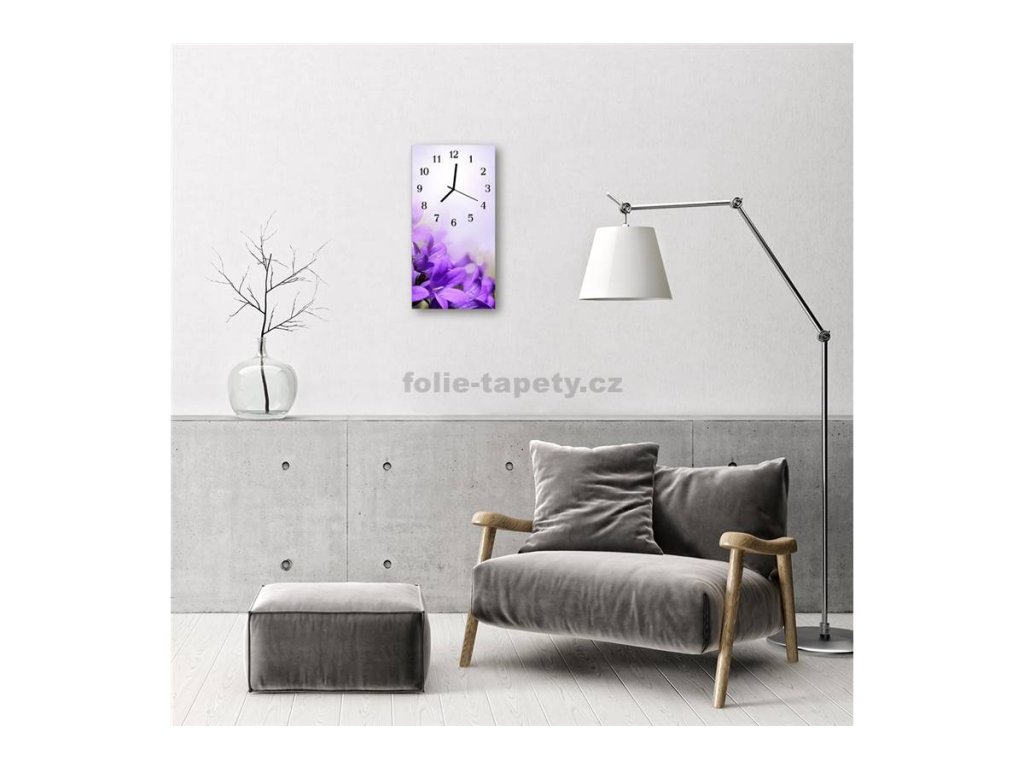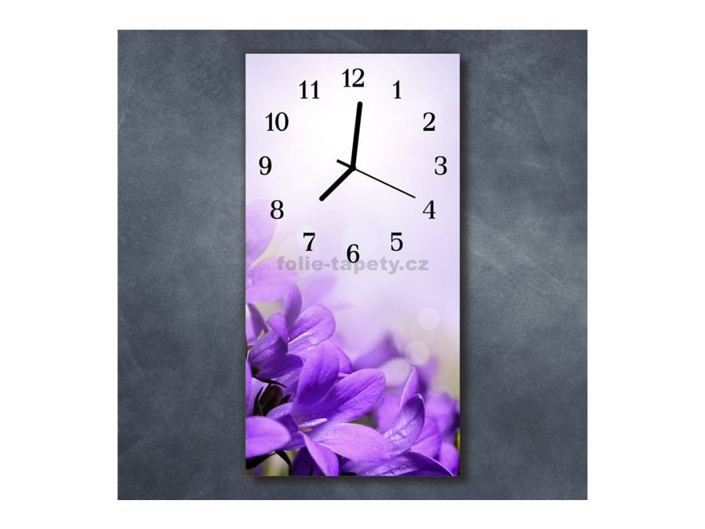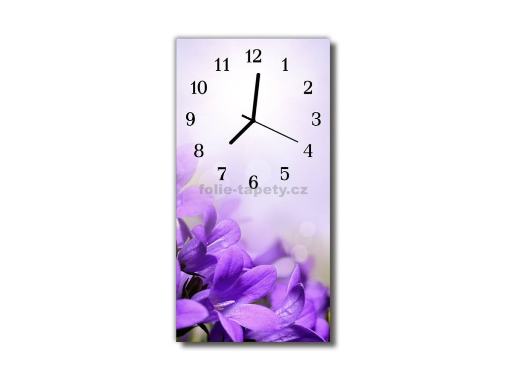 Nástěnné hodiny obrazové na skle - Fialové zvonky