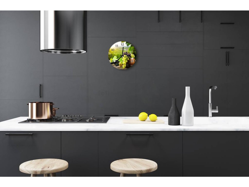Nástěnné hodiny obrazové na skle - Hrozno a víno