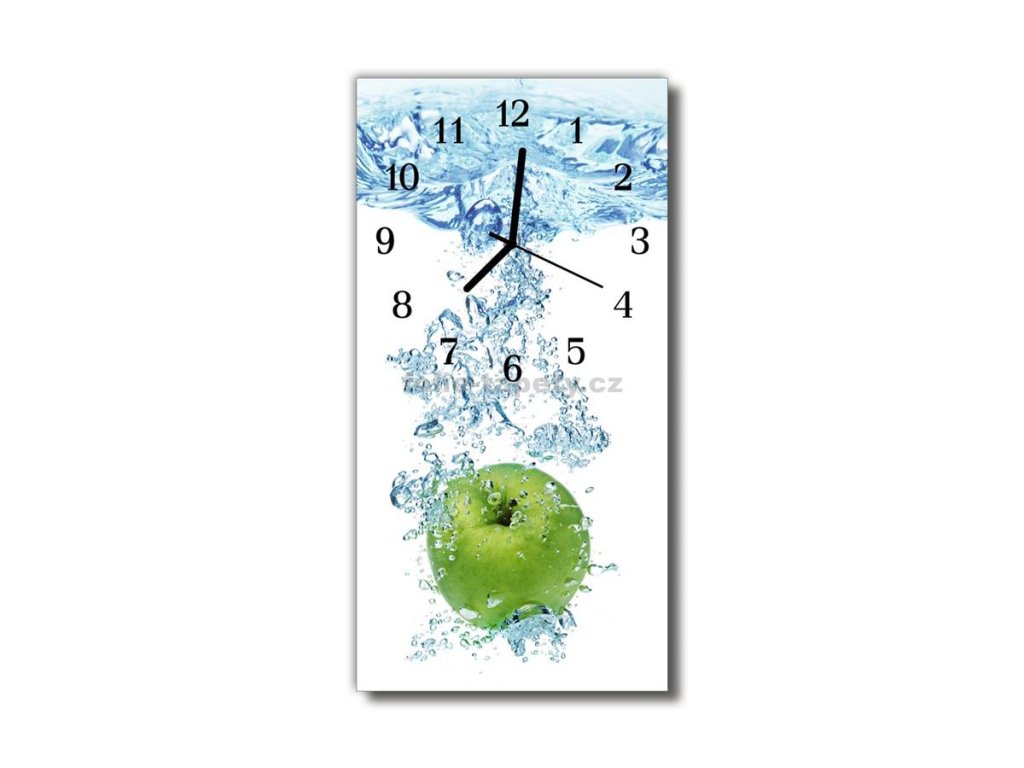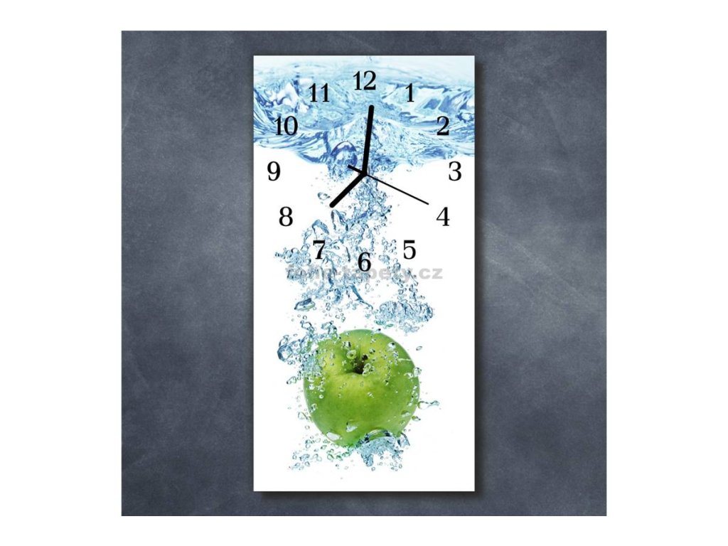 Nástěnné hodiny obrazové na skle - Jablko ve vodě