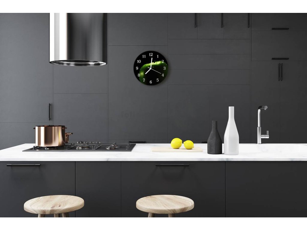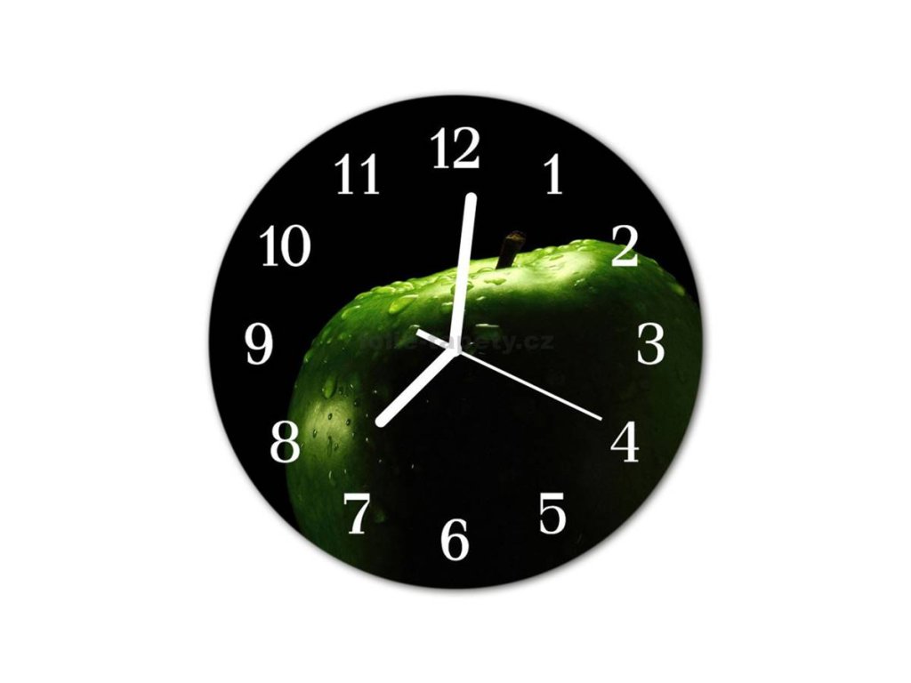 Nástěnné hodiny obrazové na skle - Jablko zelené