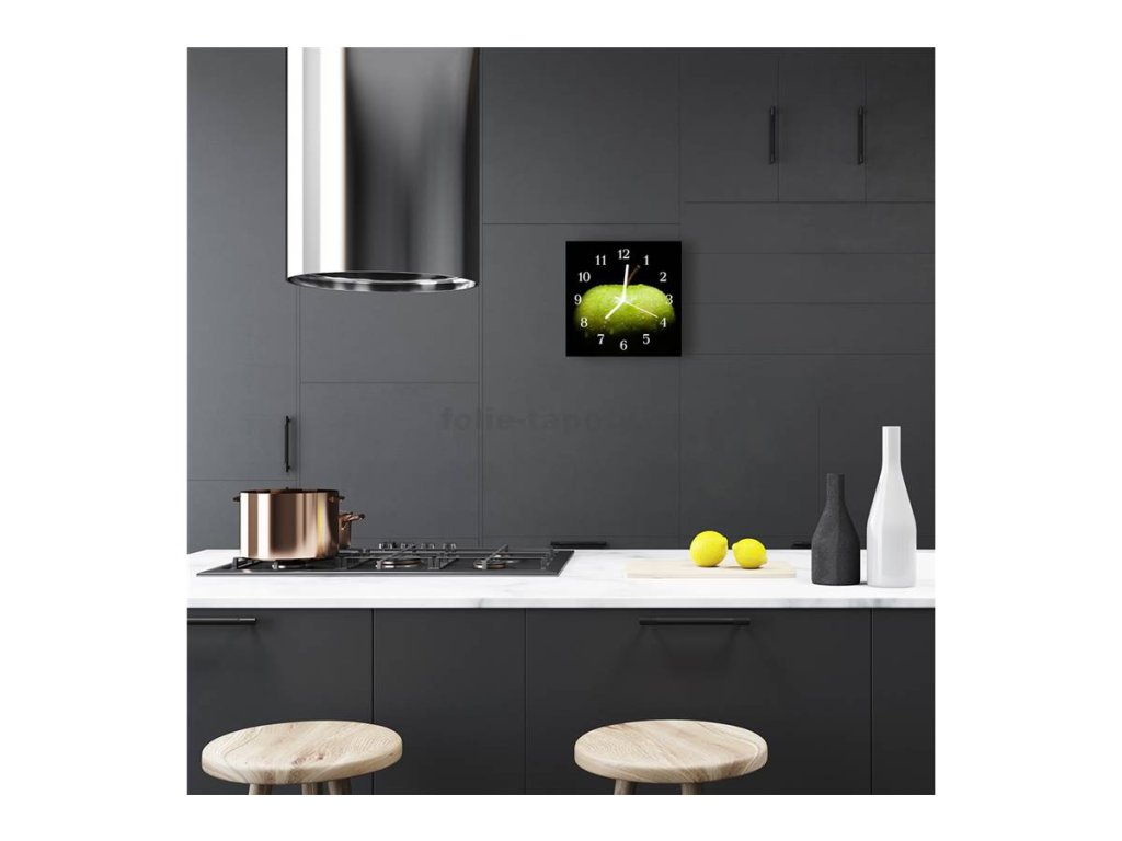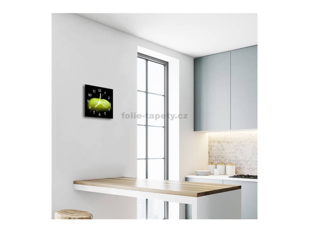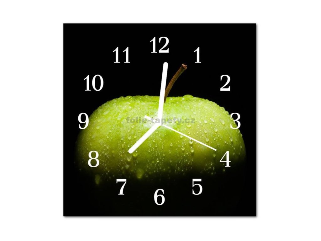 Nástěnné hodiny obrazové na skle - Jablko zelené I