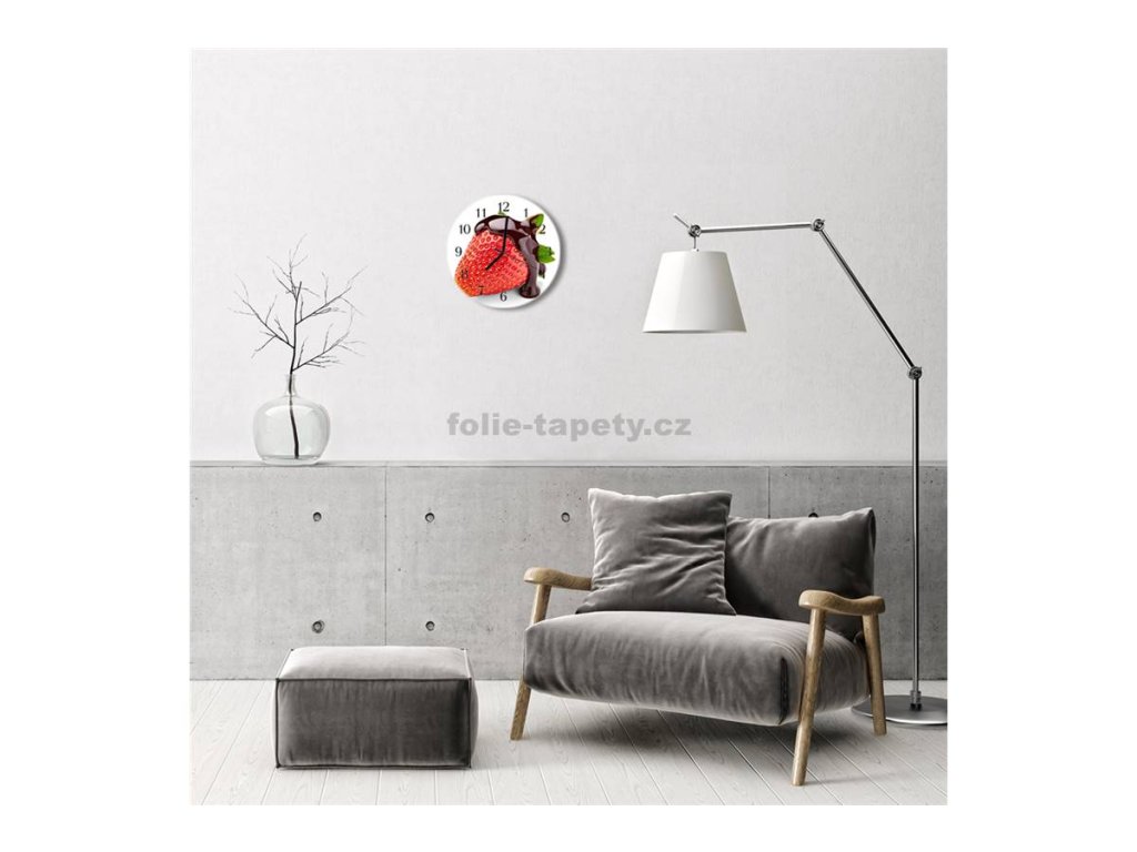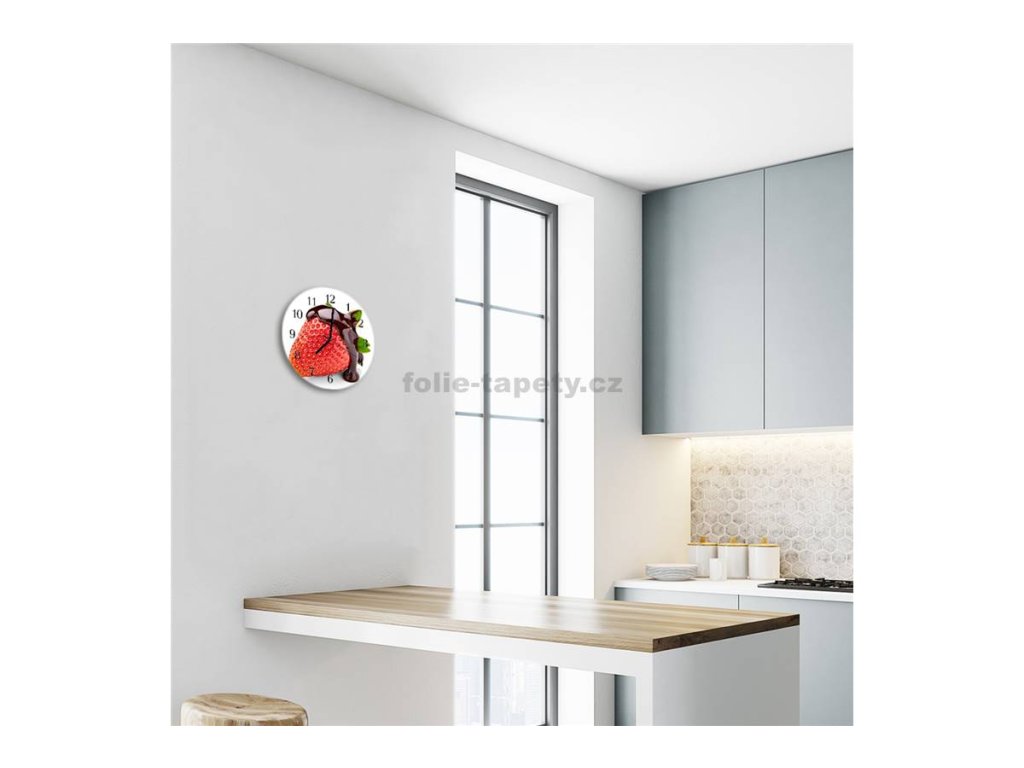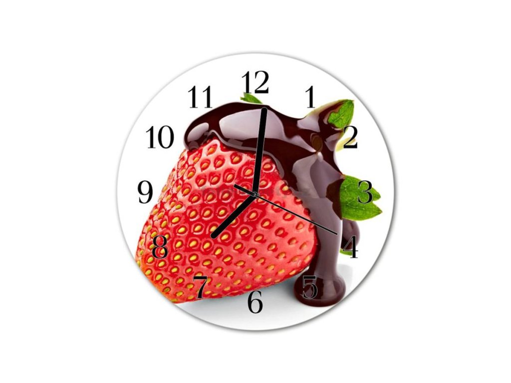 Nástěnné hodiny obrazové na skle - Jahoda v čokoladě