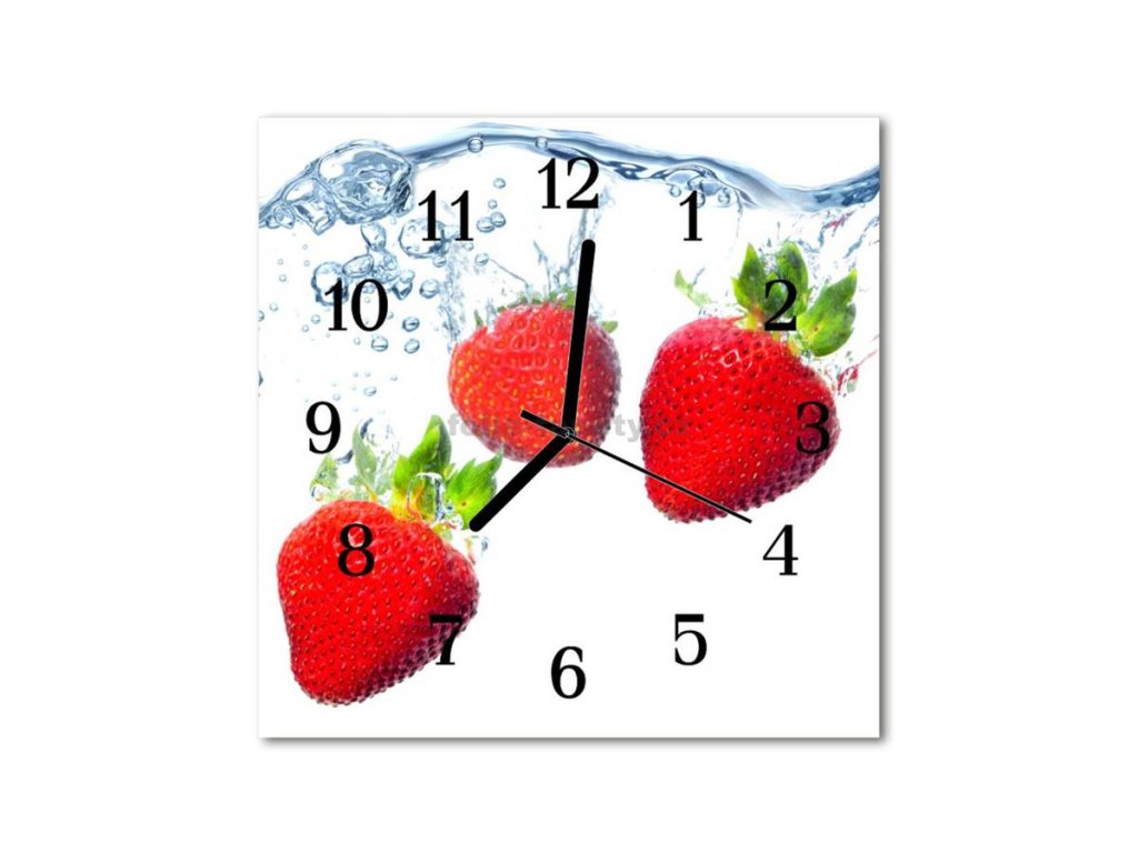 Nástěnné hodiny obrazové na skle - Jahody ve vodě