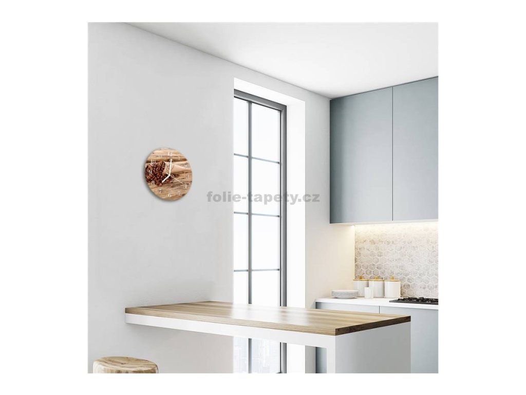 Nástěnné hodiny obrazové na skle - Káva v kornoutu