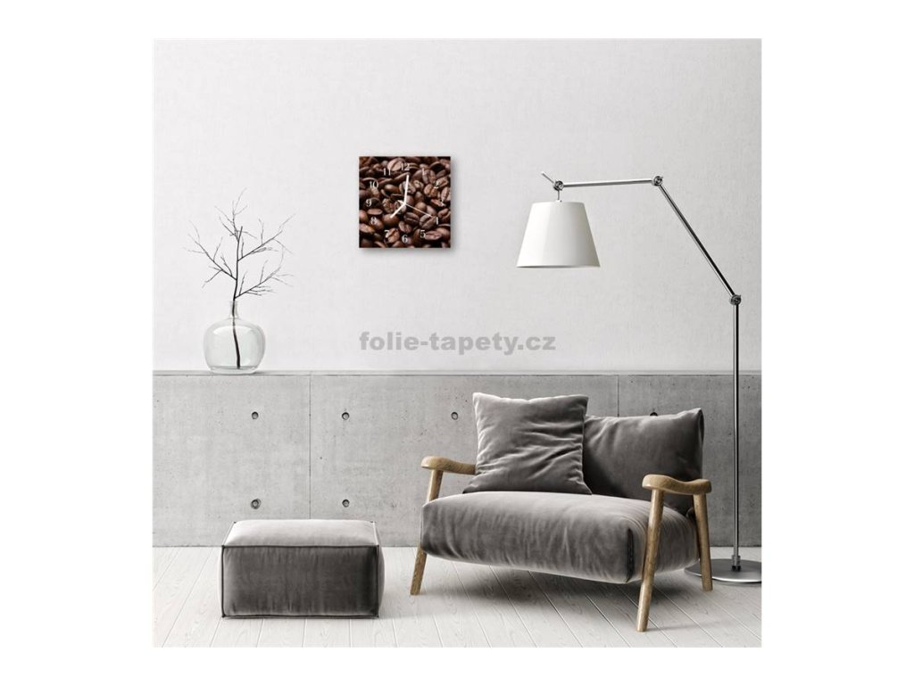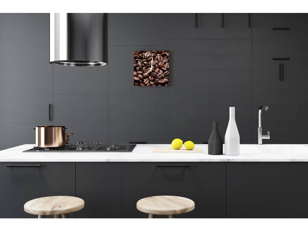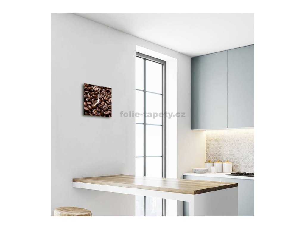 Nástěnné hodiny obrazové na skle - Kávová zrna I