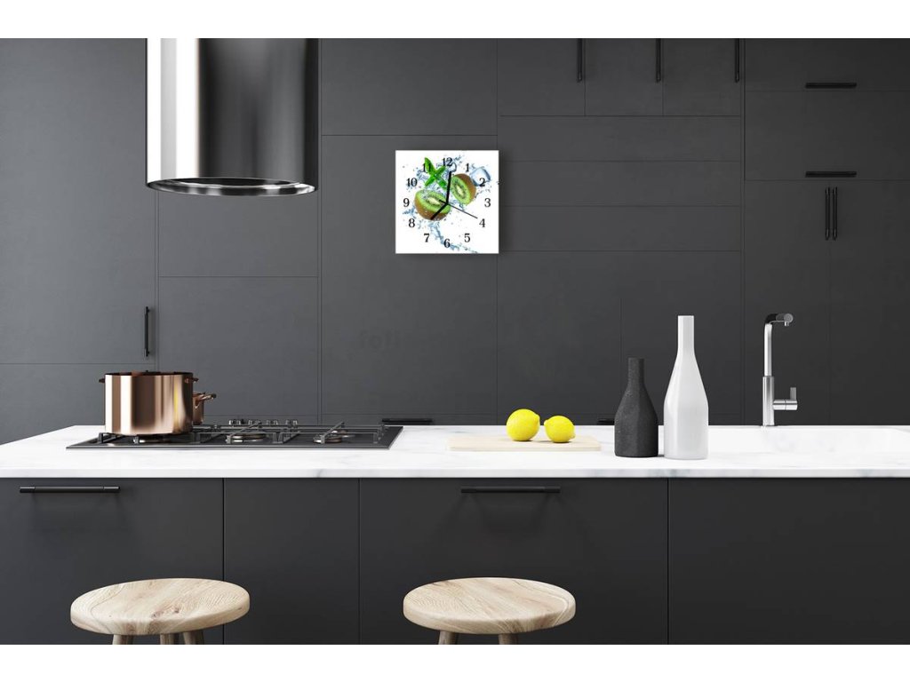 Nástěnné hodiny obrazové na skle - Kiwi a led