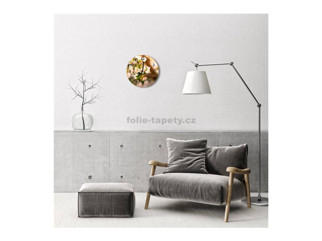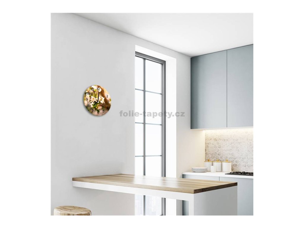 Nástěnné hodiny obrazové na skle - Květy Jabloně
