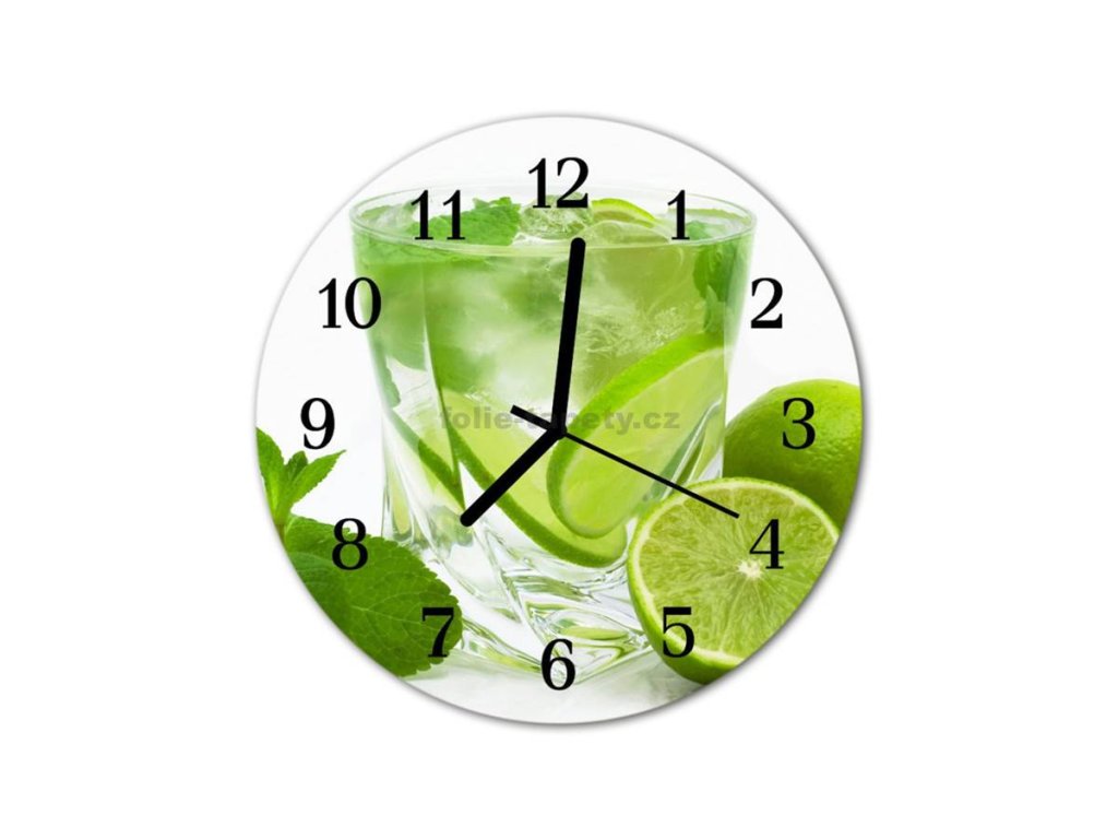 Nástěnné hodiny obrazové na skle - Limetkový nápoj