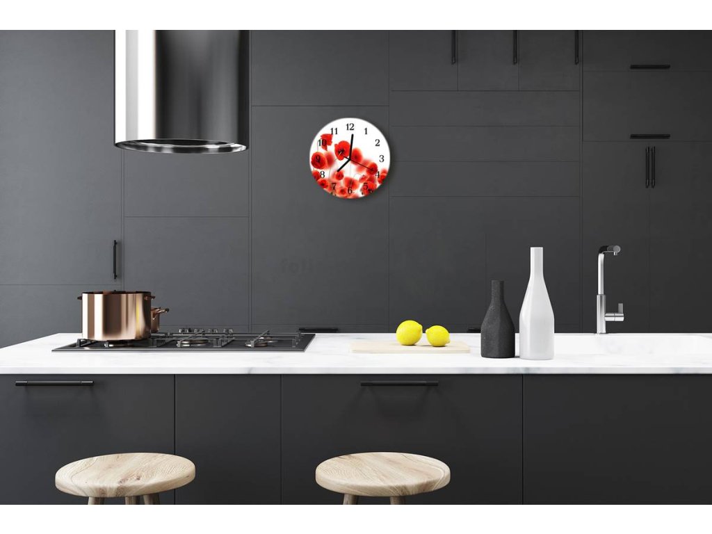 Nástěnné hodiny obrazové na skle - Mák červený