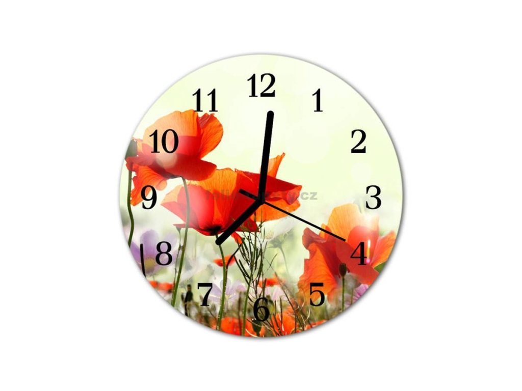 Nástěnné hodiny obrazové na skle - Mák na louce