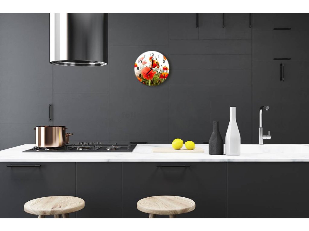 Nástěnné hodiny obrazové na skle - Maková louka