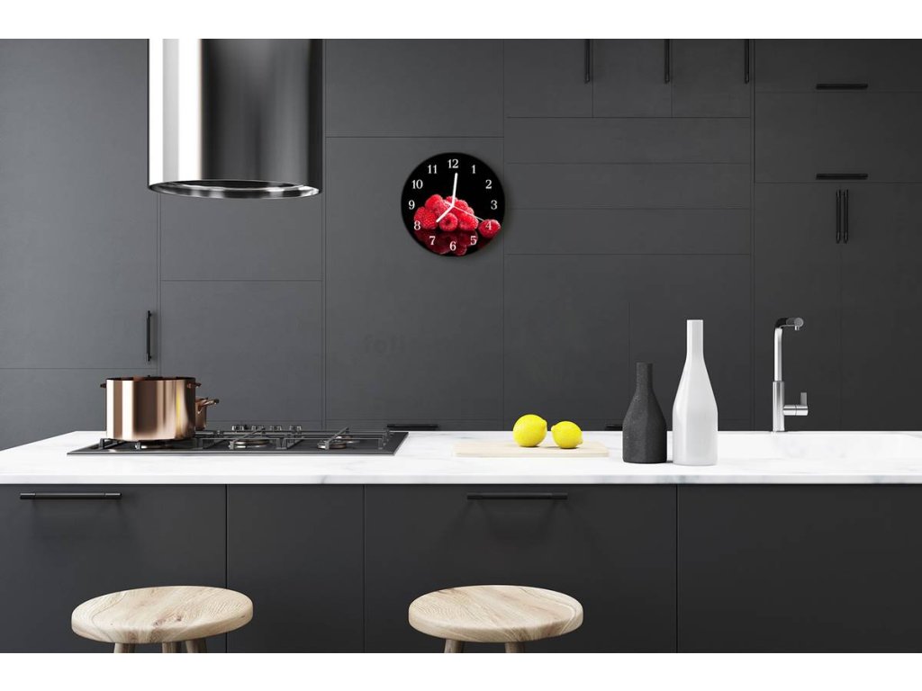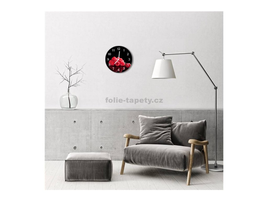 Nástěnné hodiny obrazové na skle - Maliny I