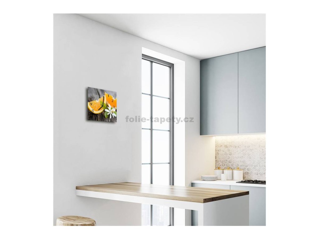 Nástěnné hodiny obrazové na skle - Měsíčky pomeranče